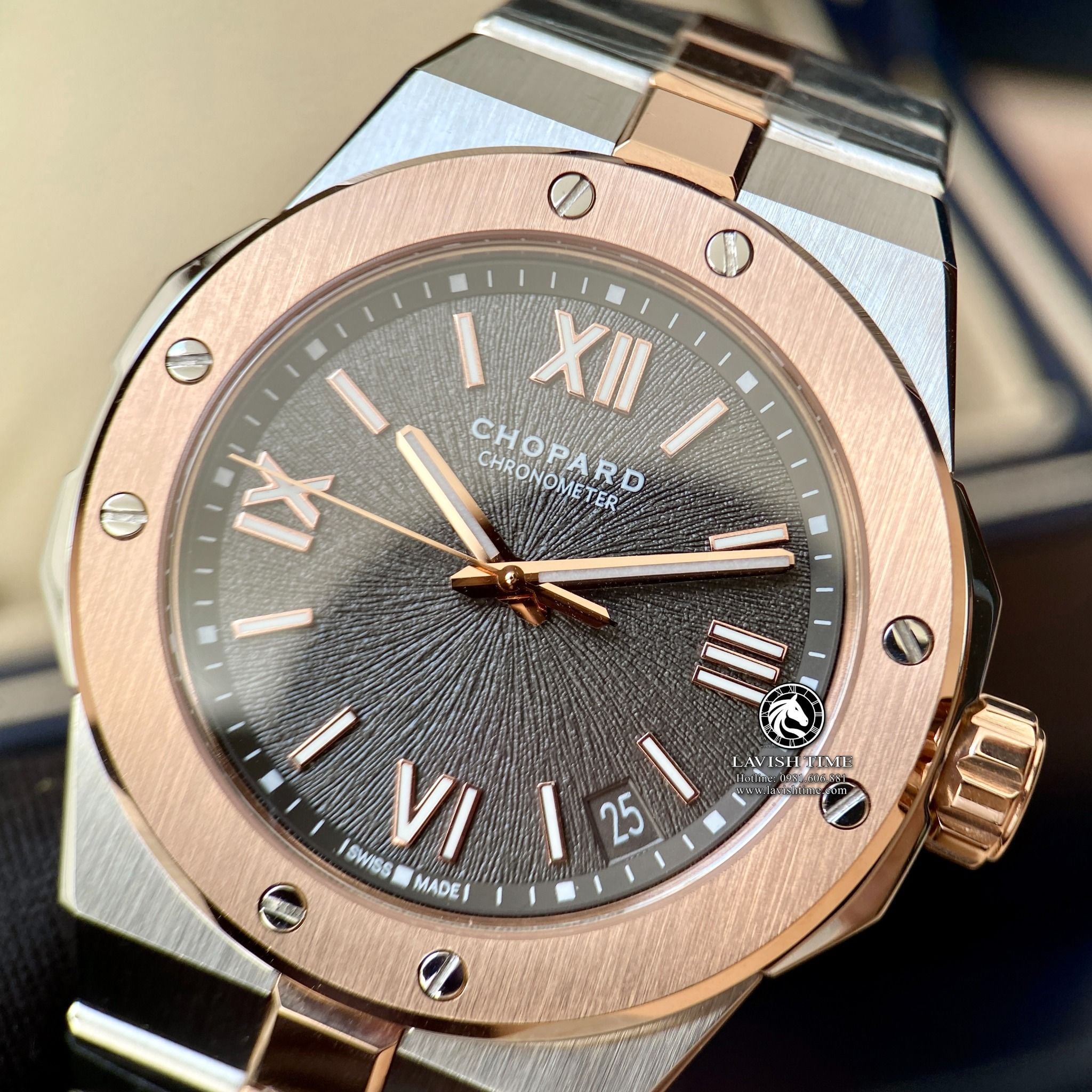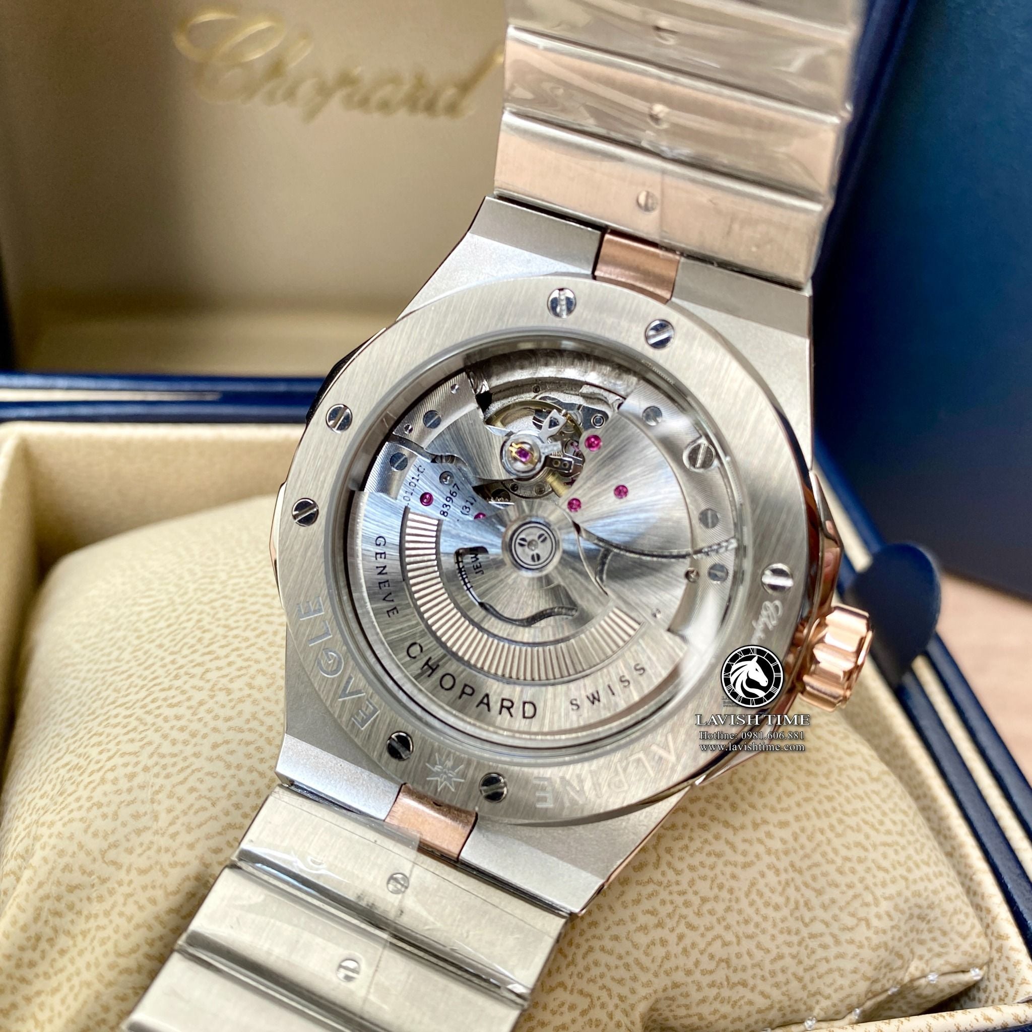 | Máy | Máy Caliber Chopard 01.12 - C nâng cấp chuẩn hãng với tần số giao động 57600 vph. |