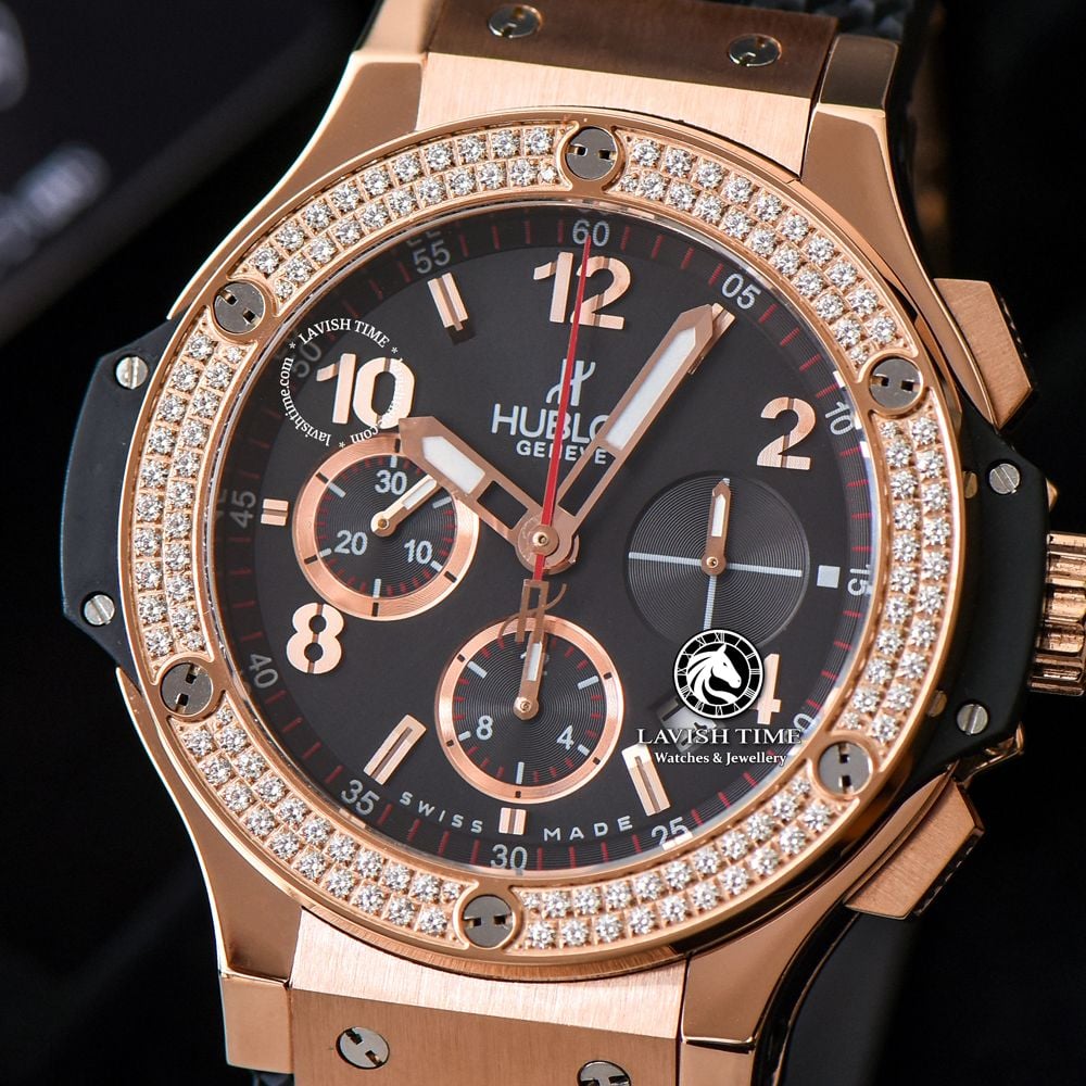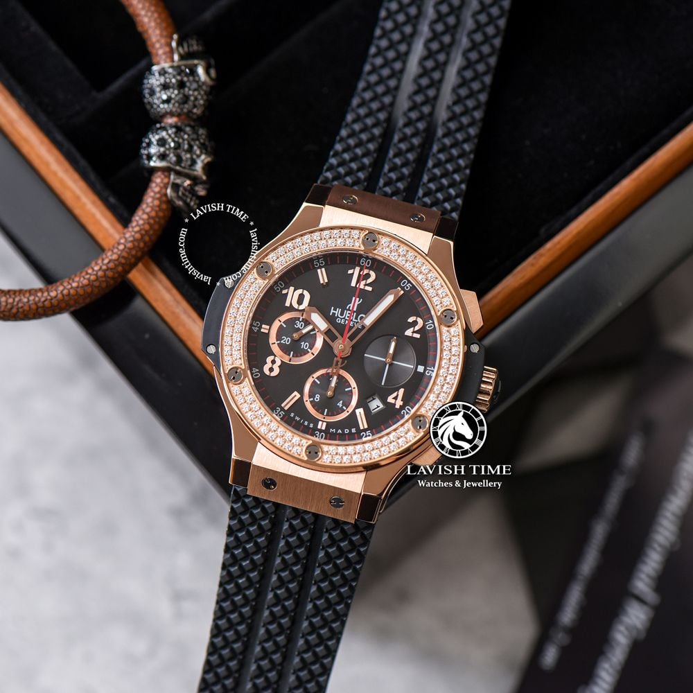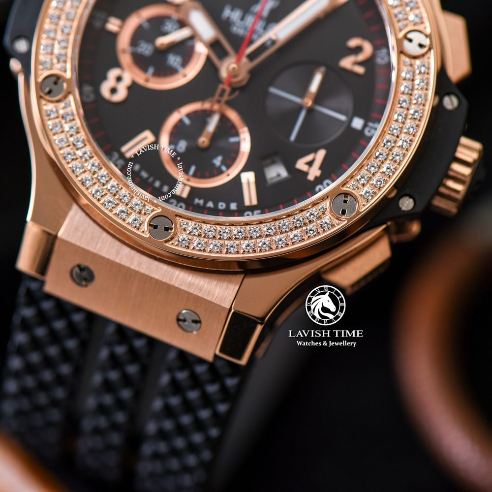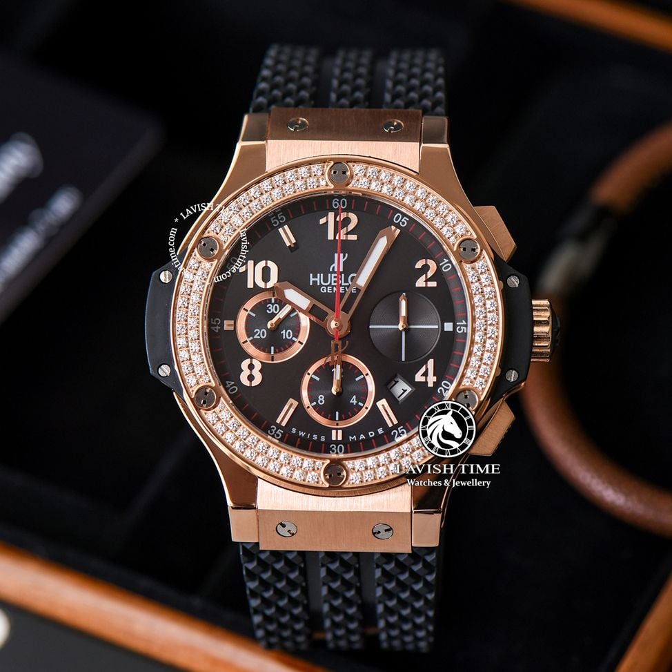 Giới thiệu Đồng Hồ Hublot Big Bang 44mm Vỏ Vàng Hồng Niềng Đá Mặt Đen 341.PX.130.RX.114