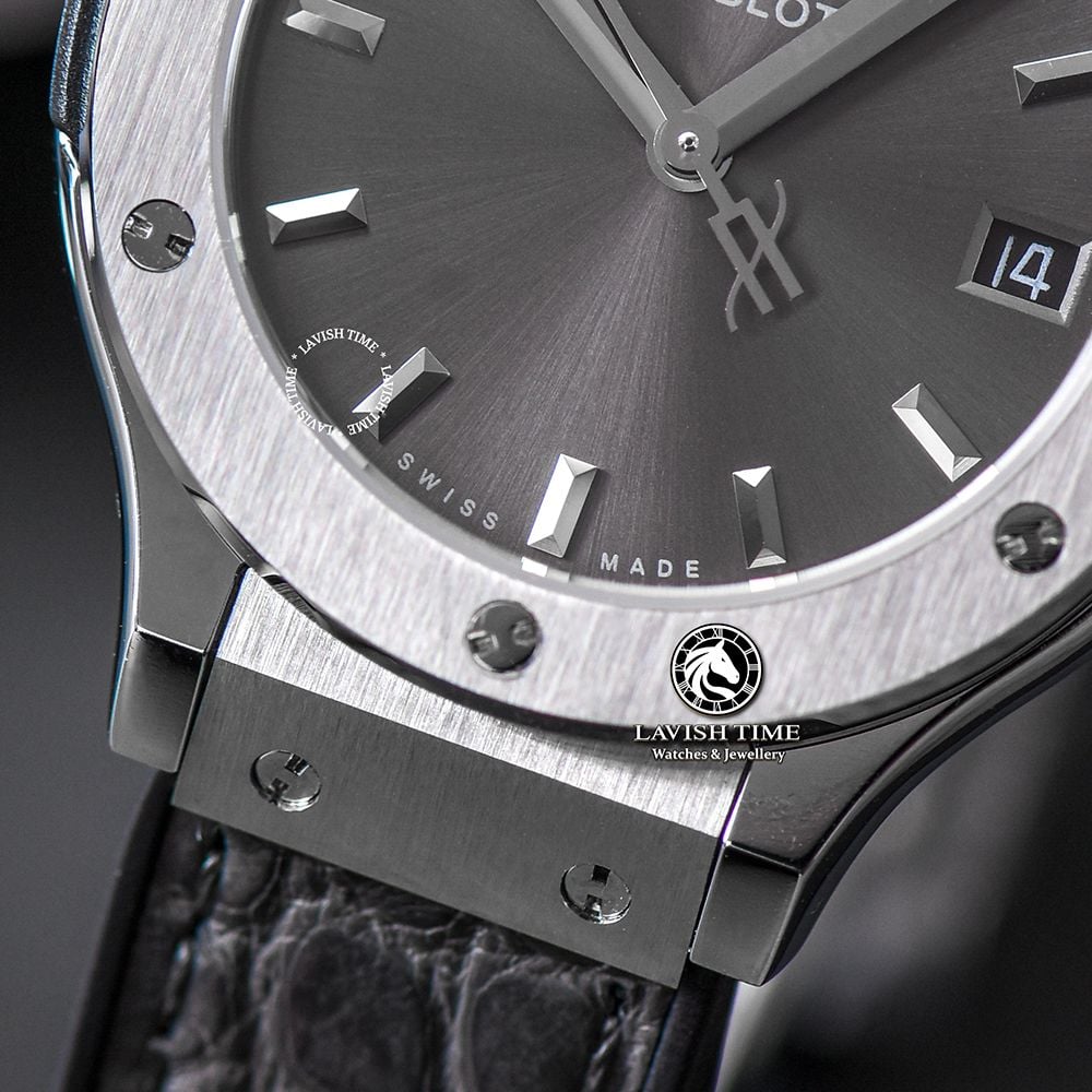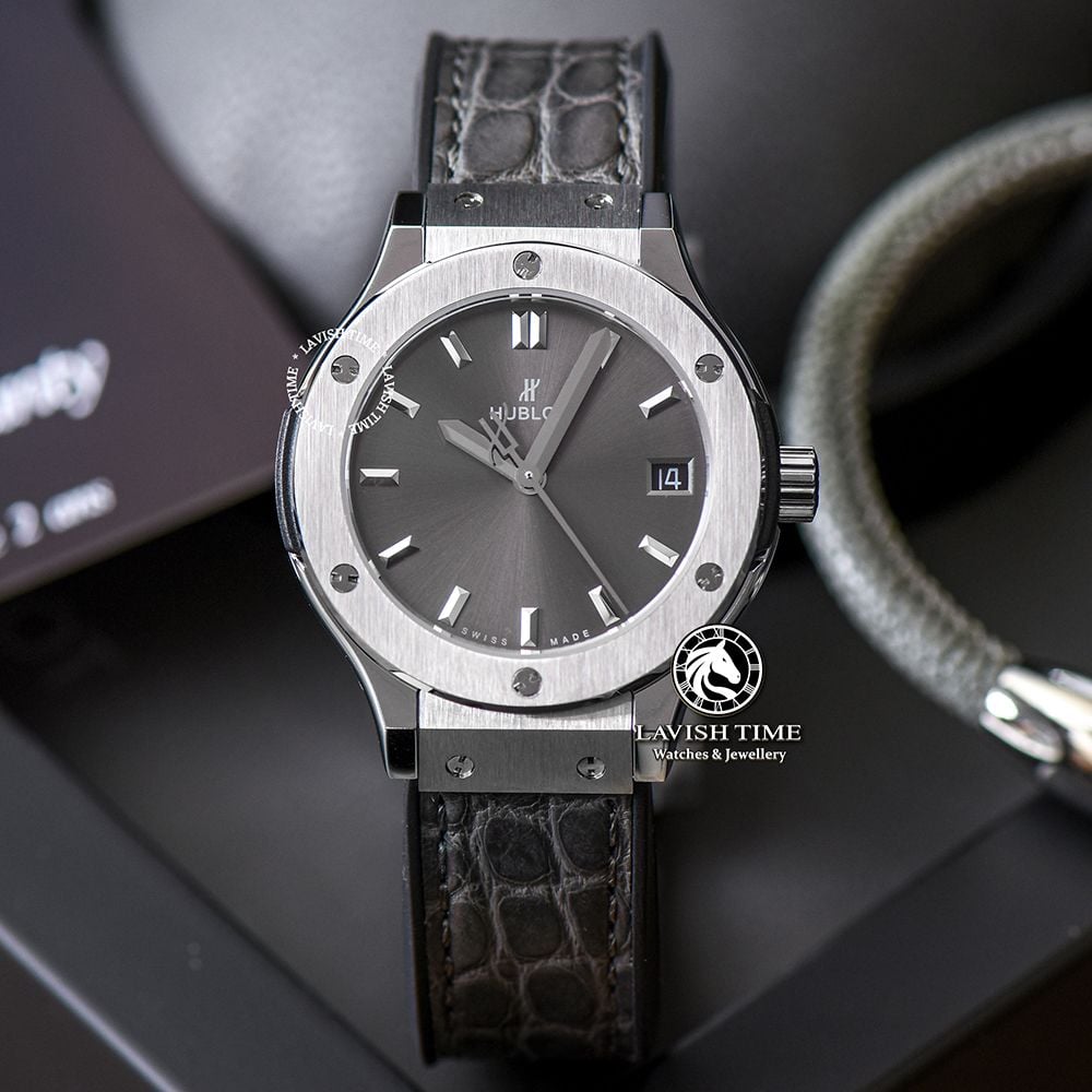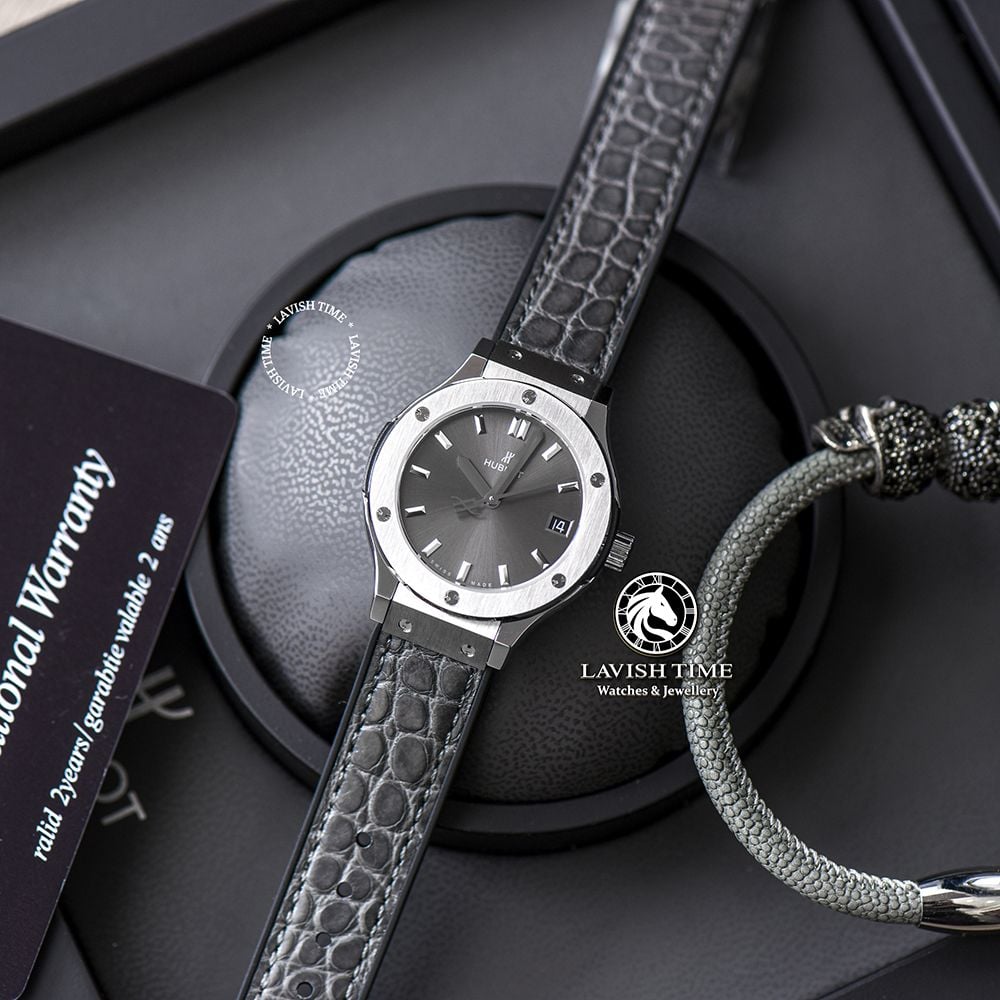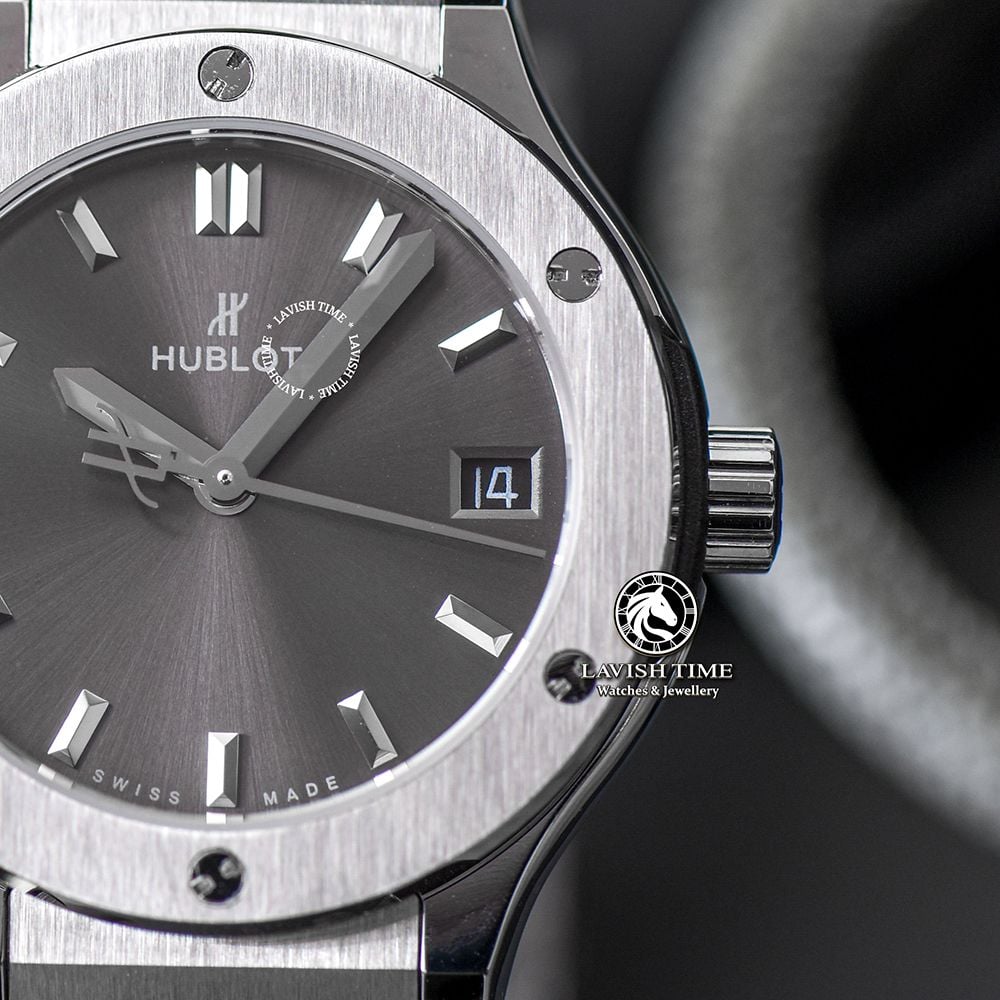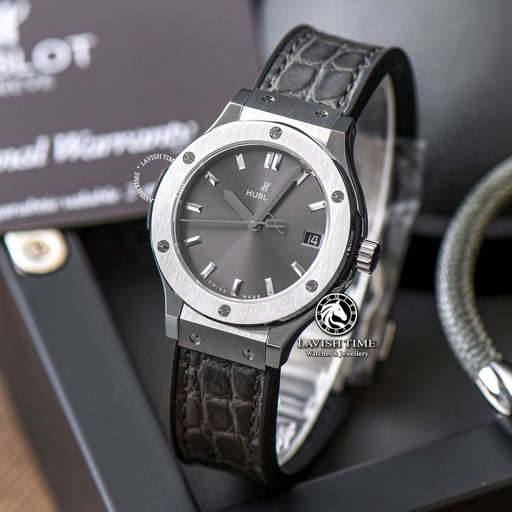 Đồng Hồ Hublot Classic Fusion 33mm Rep 1:1 Chế Tác Vỏ Bạc Mặt Số Xám Chải Tia 581.NX.7071.LR