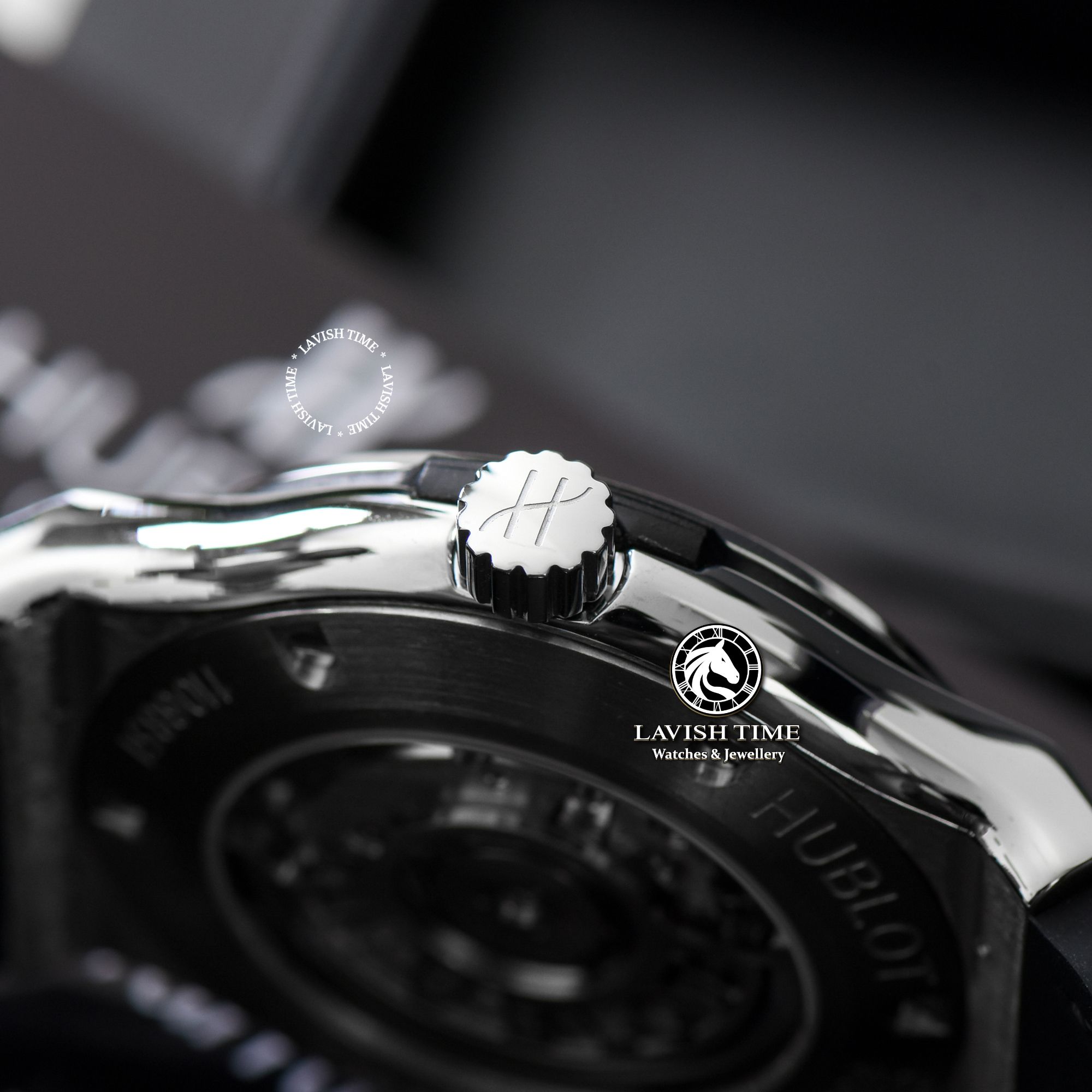 Sự ấn tượng còn nằm ở phần vành đồng hồ được tô điểm bởi 6 chiếc đinh ốc bằng chắc chắn, cách điệu theo chữ H của Hublot. Phần càng nối dây được làm với kích thước hợp lý, cứng cáp và ôm trọn lấy khu vực ngoài của mặt đồng hồ.