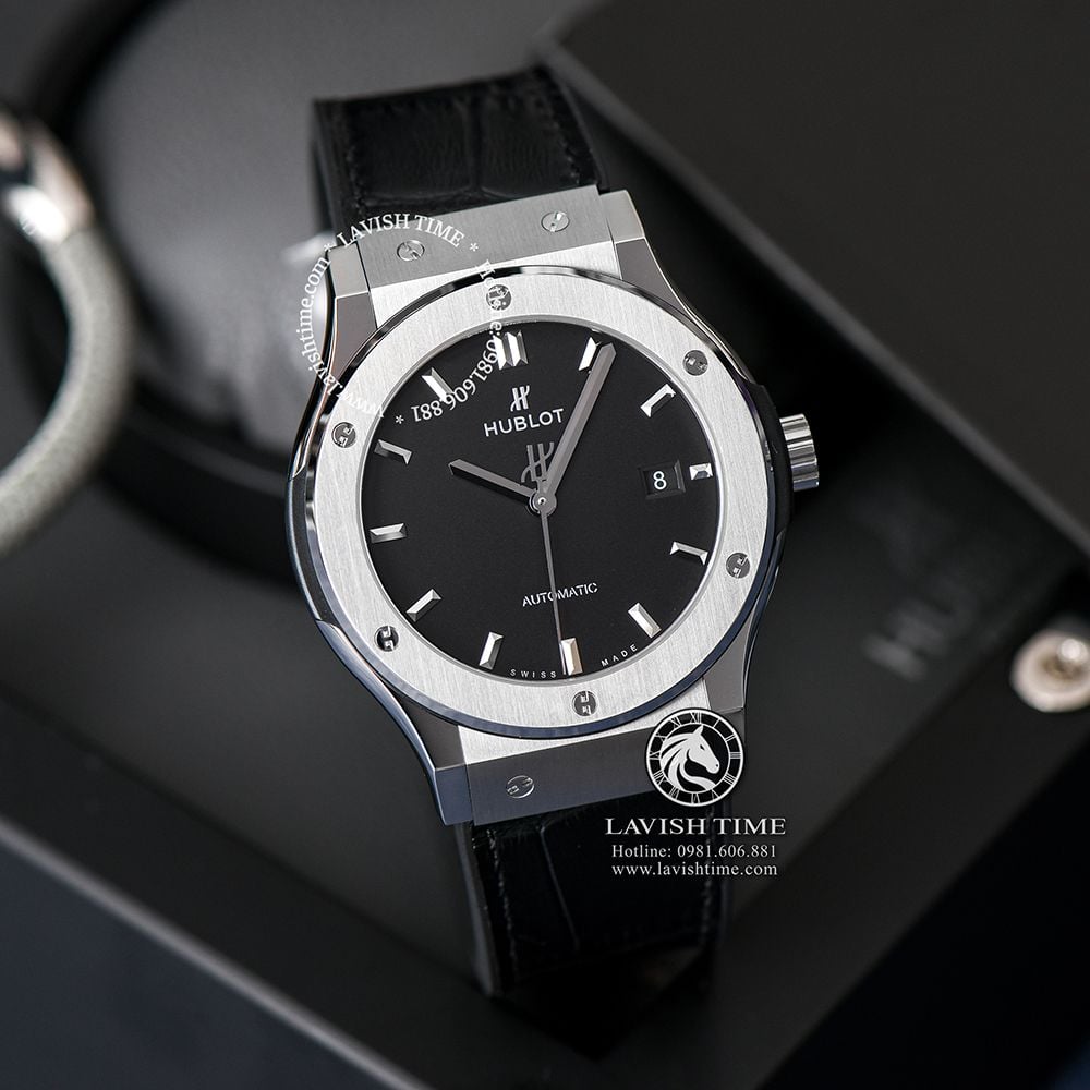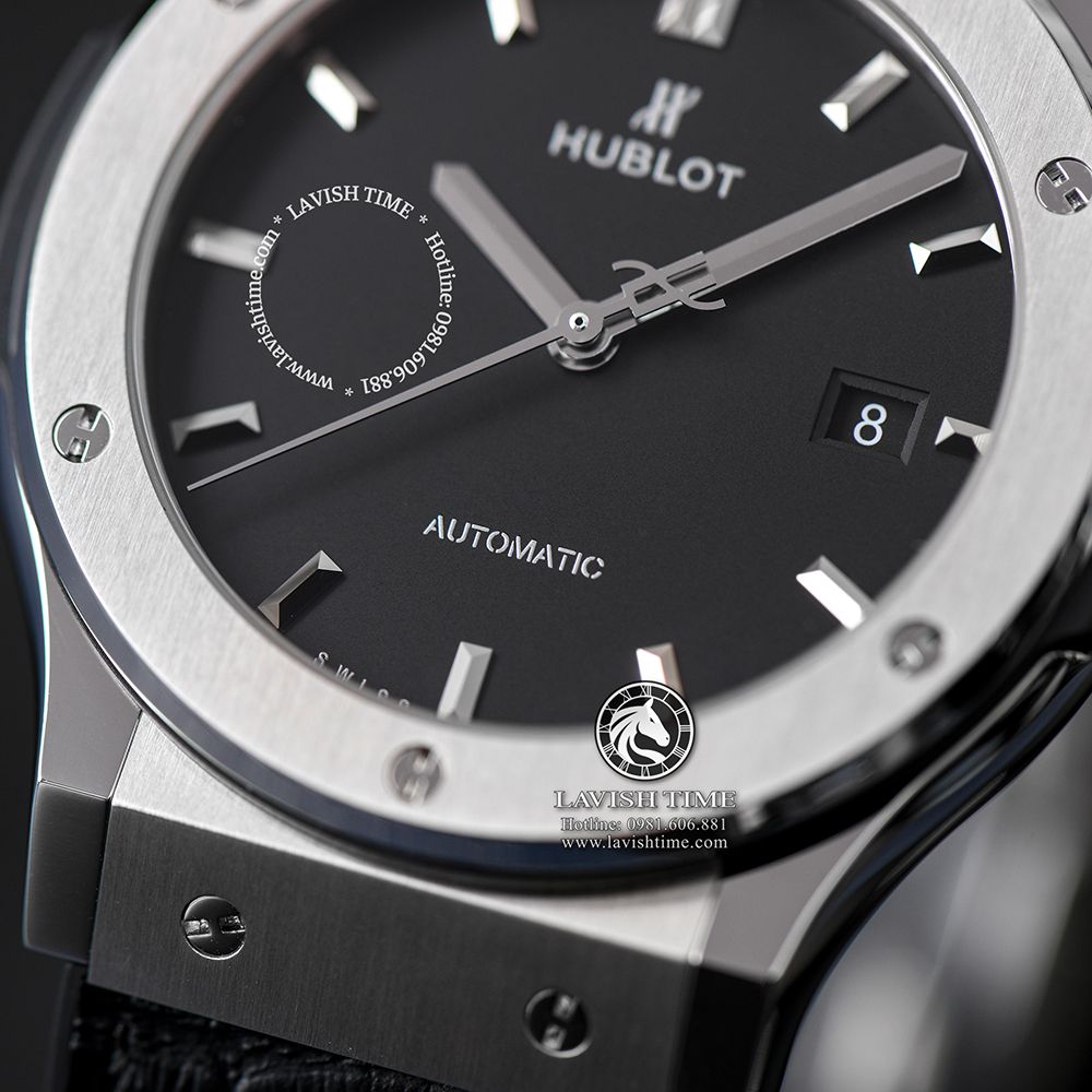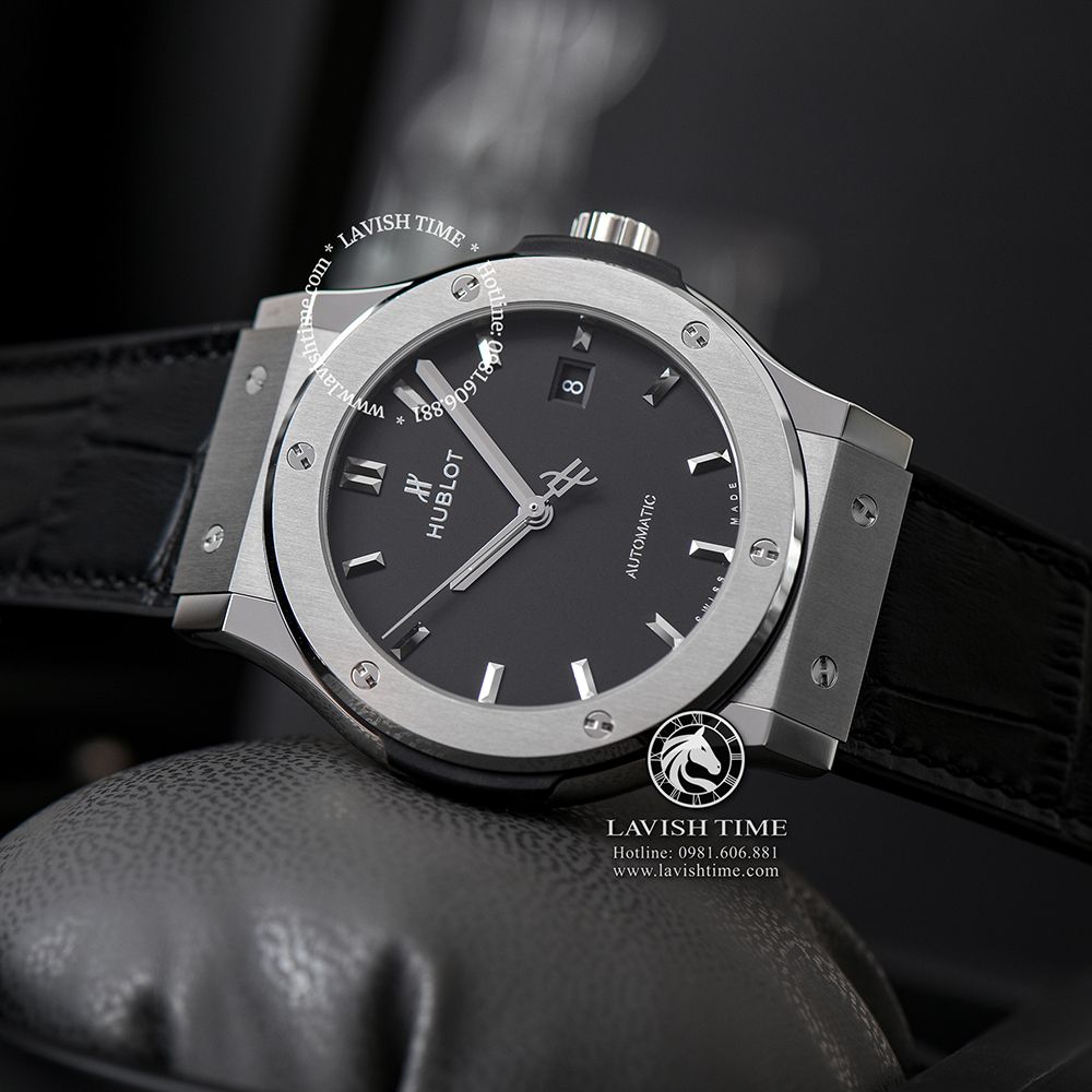 Giới thiệu Đồng Hồ Hublot Classic Fusion 42mm Vỏ Bạc Titanium Mặt Số Đen Dây Cá Sấu 542.NX.1171.LR