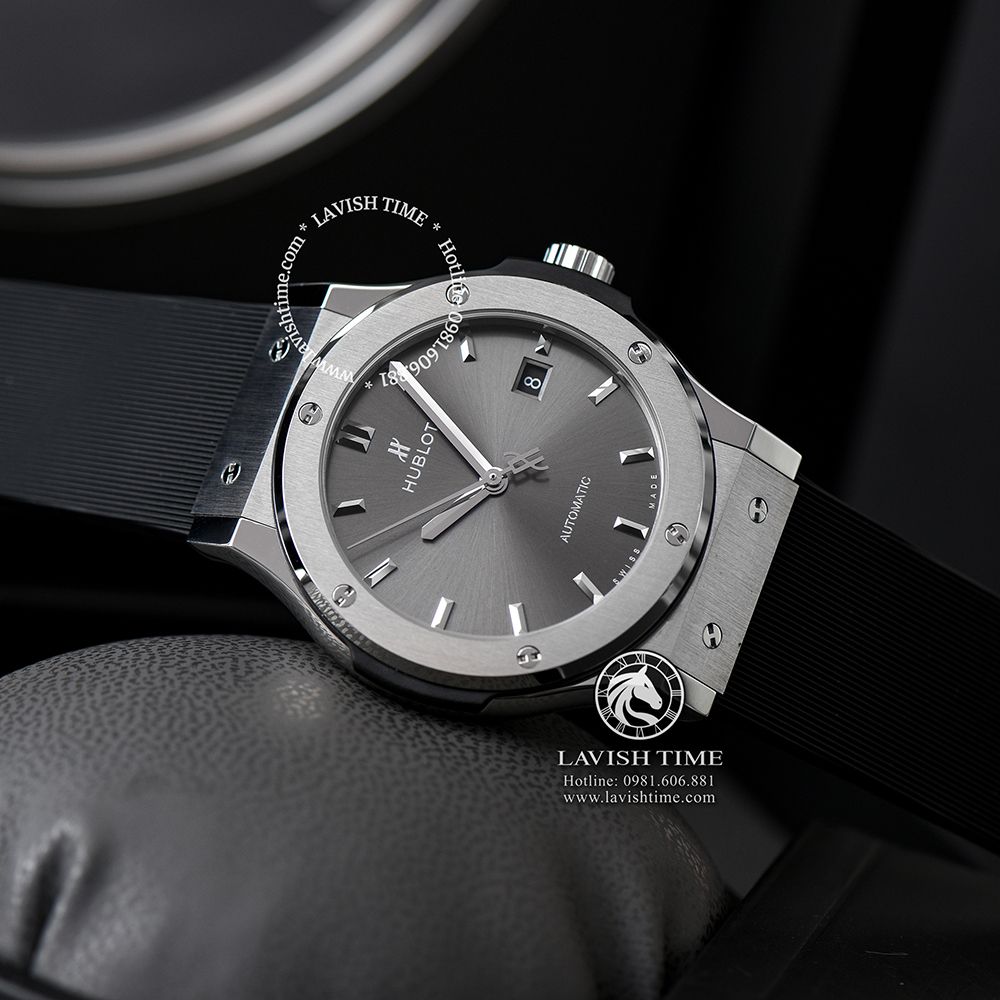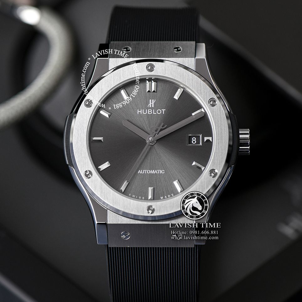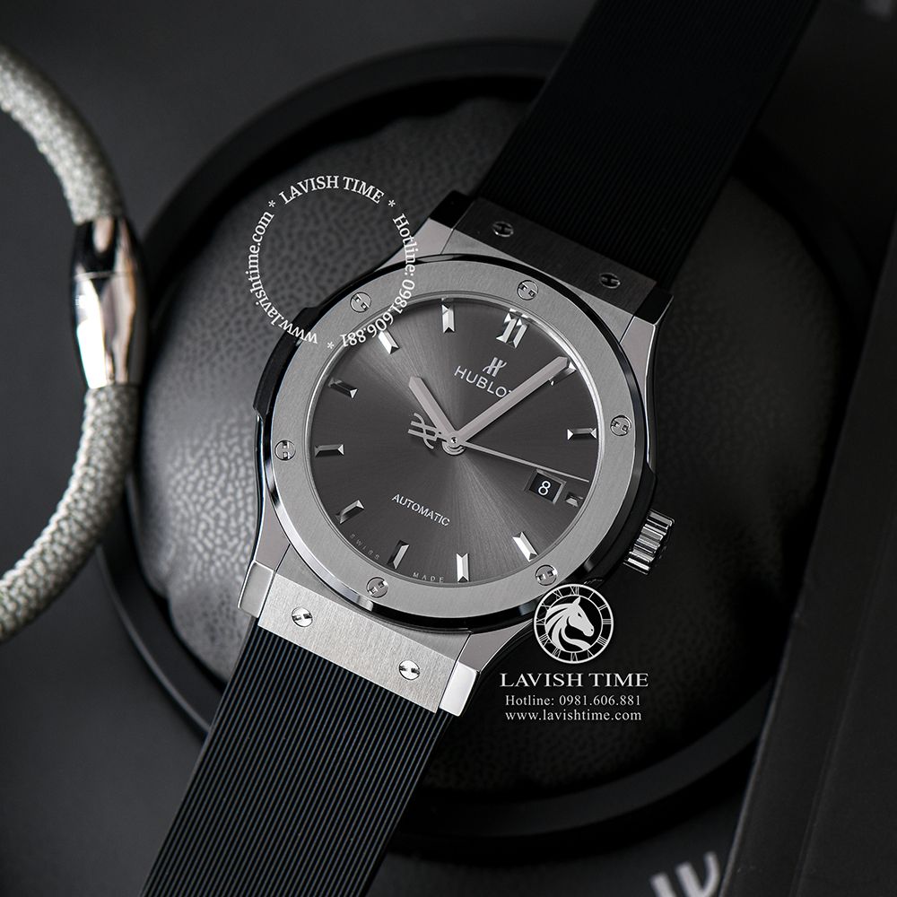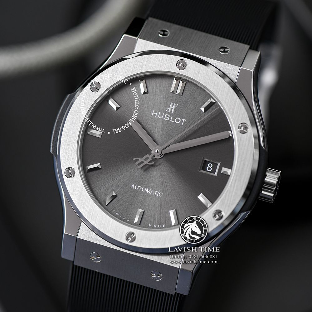 Đồng Hồ Hublot Classic Fusion 42mm Rep 1:1 Chế Tác Vỏ Bạc Titanium Mặt Số Xám Chải Tia Dây Cao Su Đen 542.NX.7071.RX