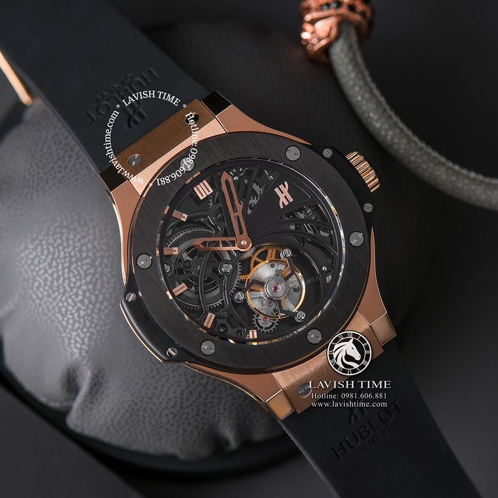 Nếu các anh thật sự yêu thích vẻ đẹpcơ khí và thiết kế độc đáo thì không thể bỏ các mẫu đồng hồ Hublot Big Bang Minute Repeater Tourbillon 44mm phiên bản Rep 1:1 được chế tác cao cấp nhất này tại Lavish Time.