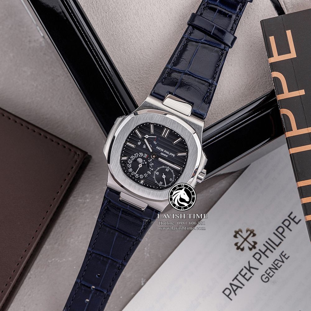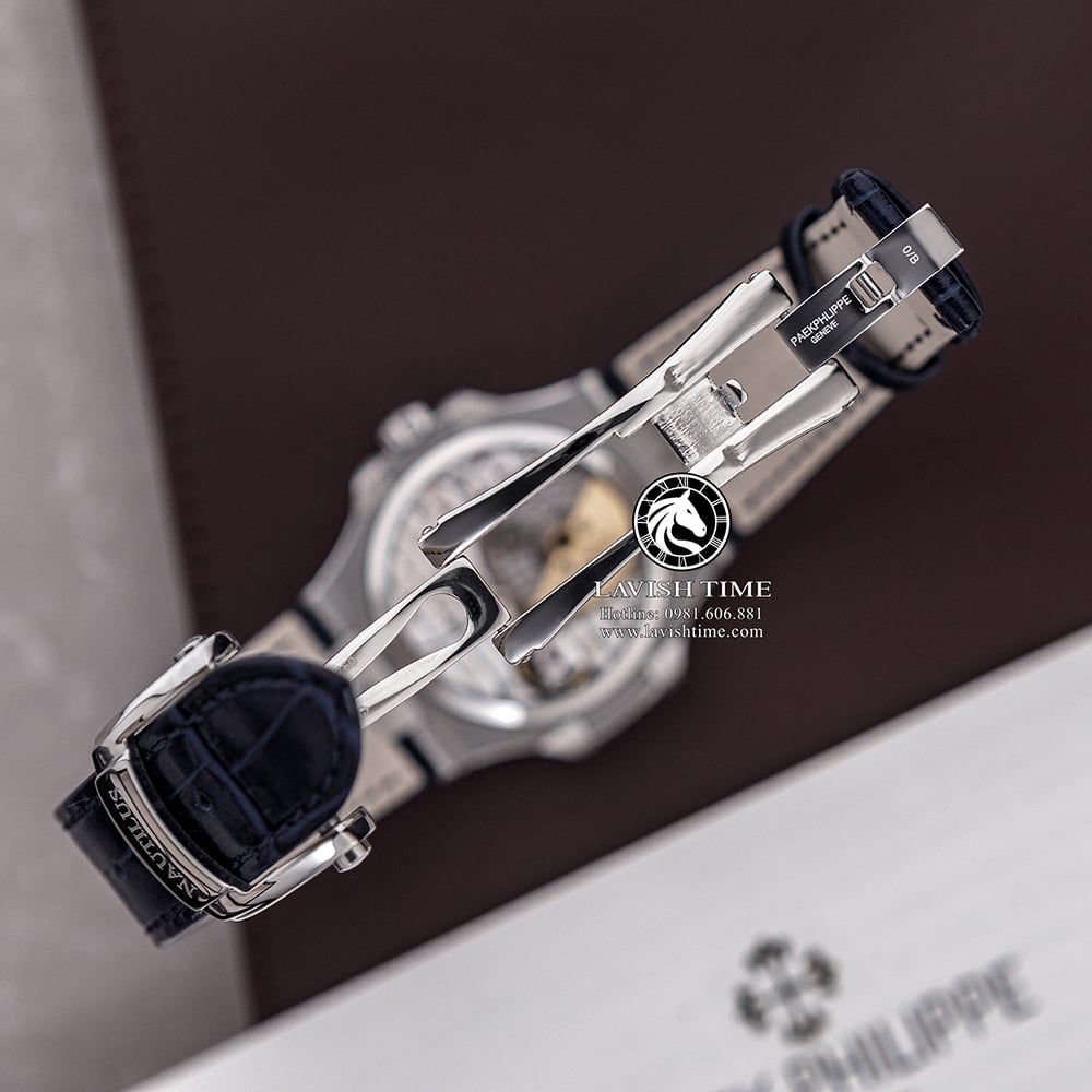 Đồng Hồ Patek Philippe Nautilus 5712/A-001 Rep 1:1 Chế Tác Vỏ Bạc Mặt Xanh Dương Dây Da