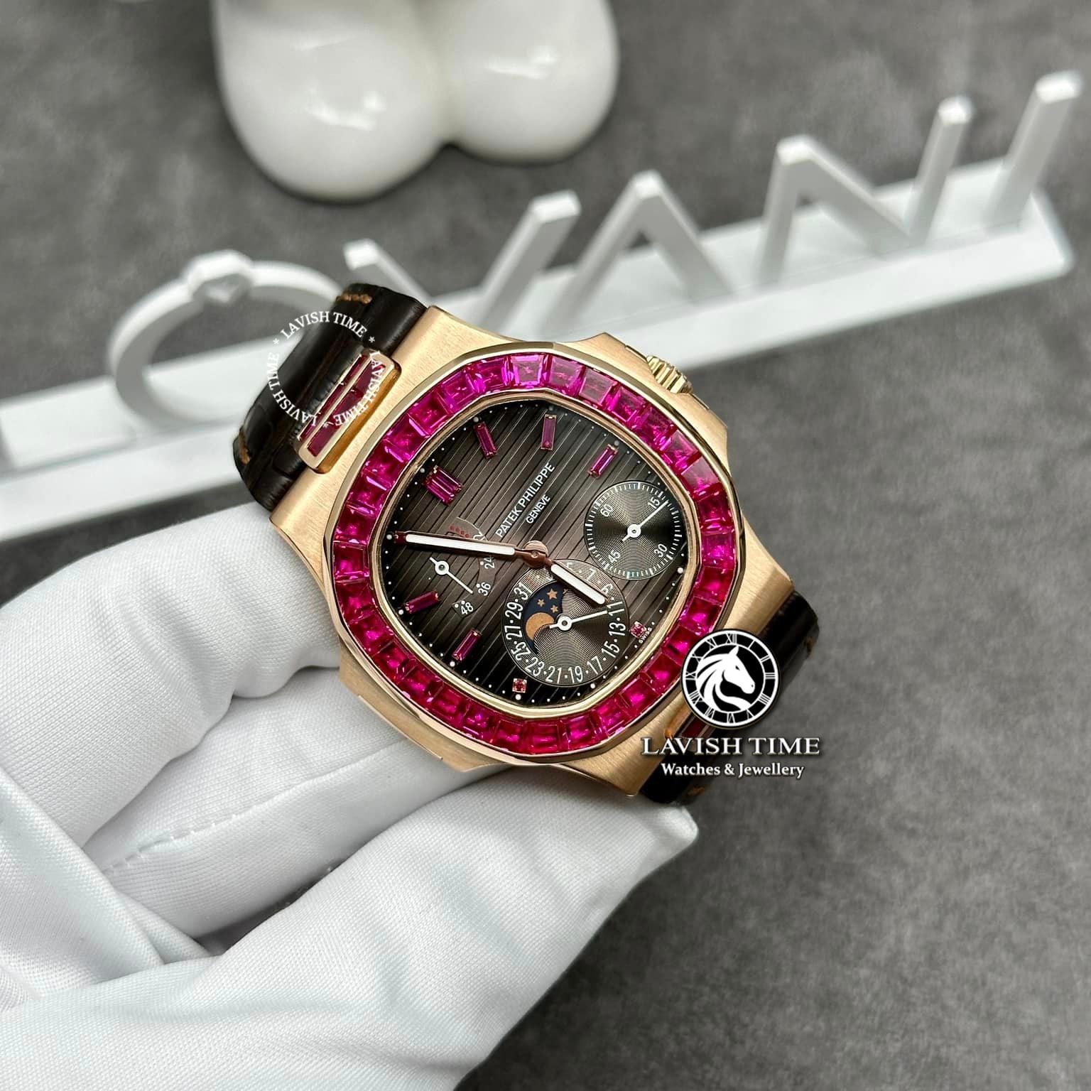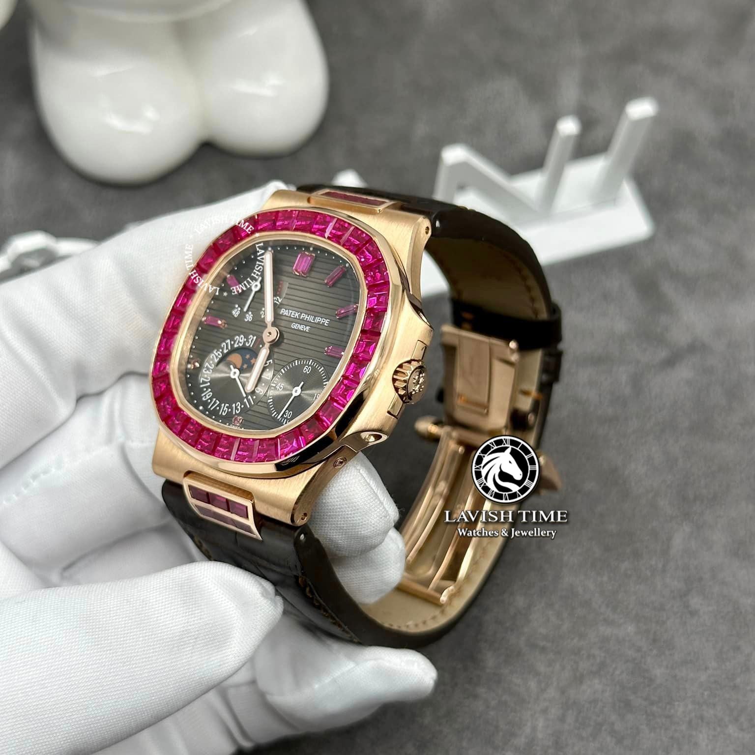 Nói về lich sử thương hiệu Patek Philippe sở hữu hữu hàng ngàn bằng sáng chế cho các phát minh vĩ đại của mình từ lúc thành lập đến nay, Patek Philippe đã cống hiến cho lịch sử đếm giờ nhân loại những sáng tạo vượt hơn sức tưởng tượng của con người. Patek Philippe Nautilus 5724/12R Rose Gold Ruby chính là chiếc đồng hồ đặc biệt được sản xuất dành riêng cho những khách hàng đặc biệt nhất,