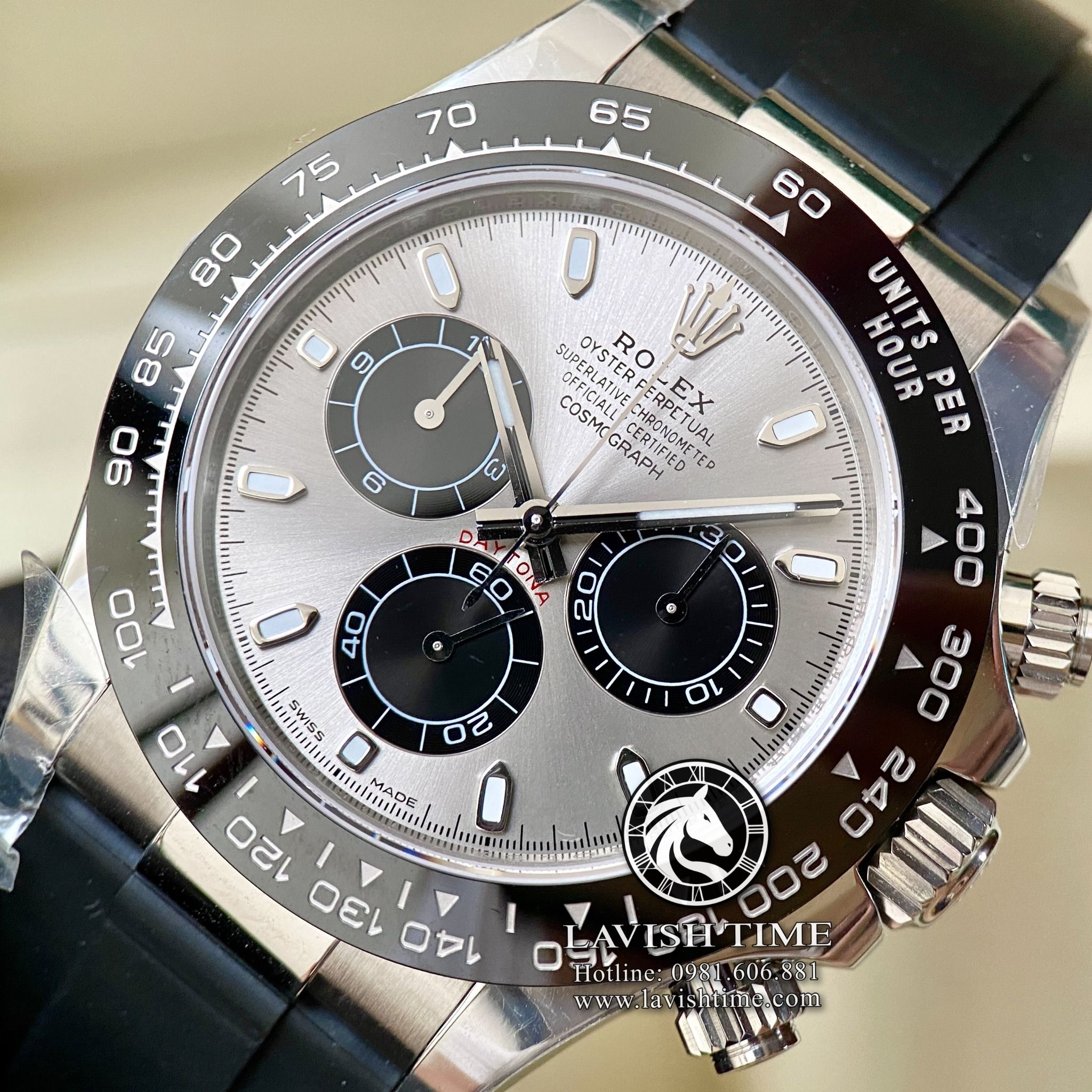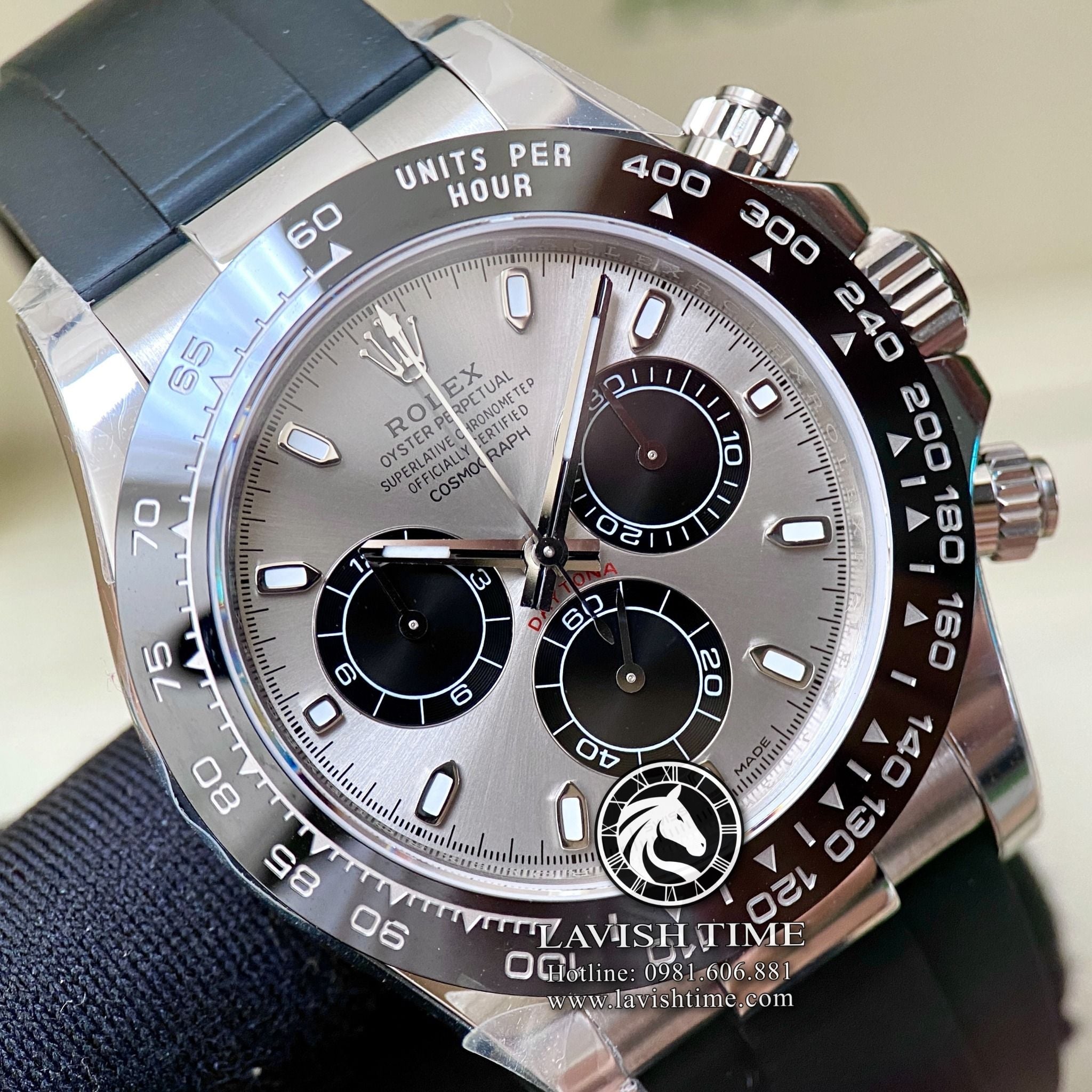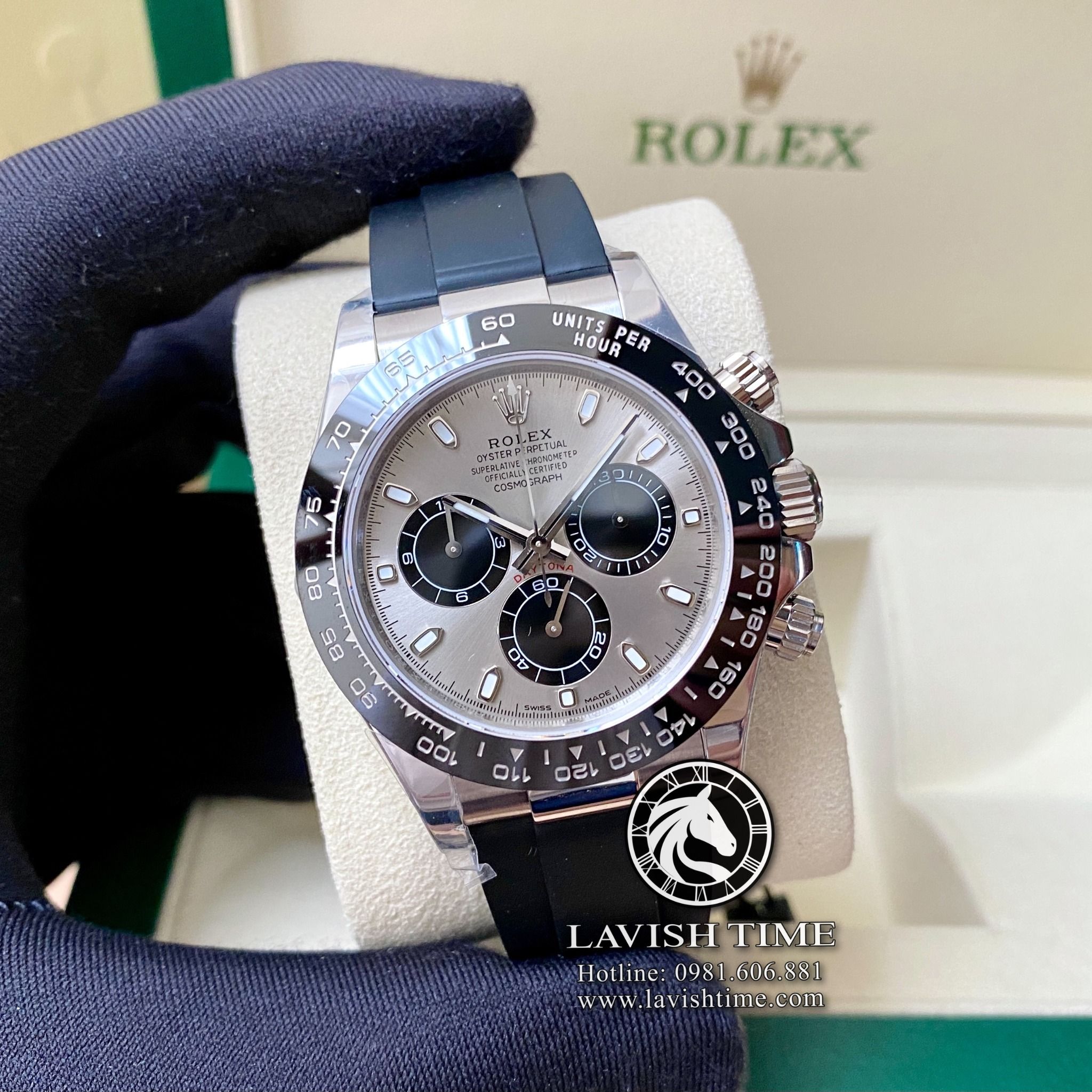 Đồng Hồ Rolex Cosmograph Daytona 116519LN-0027 Rep 1:1 Cao Cấp Vỏ Bạc Mặt Xám Dây Cao Su
