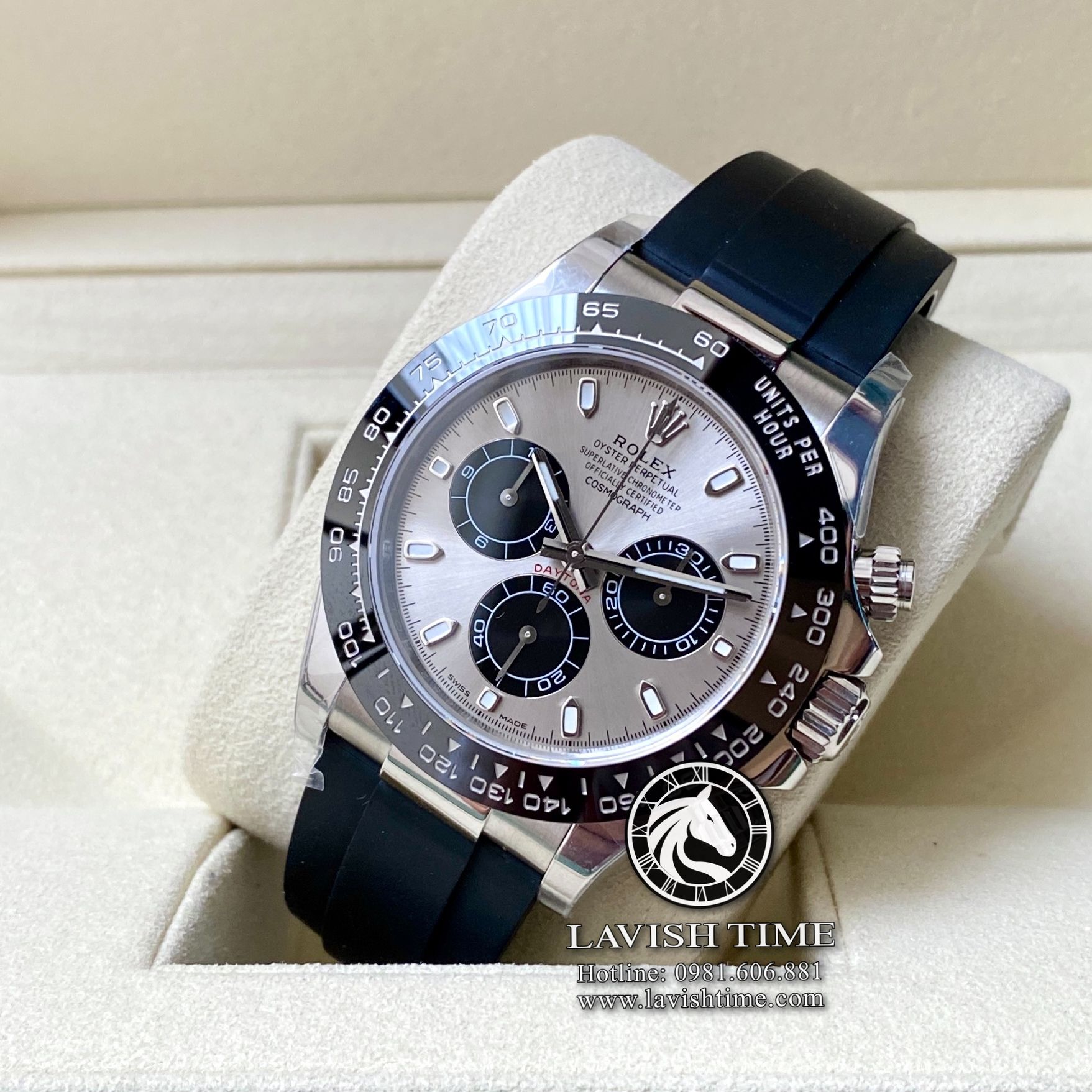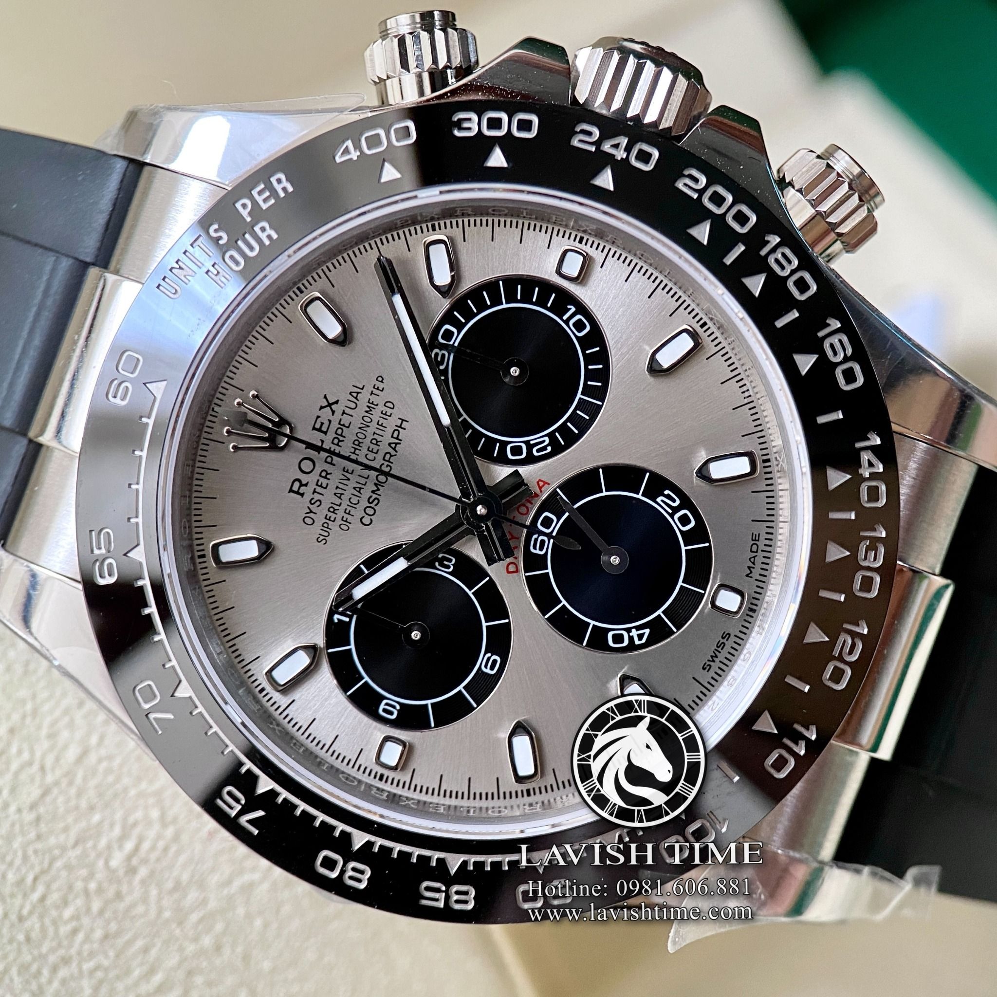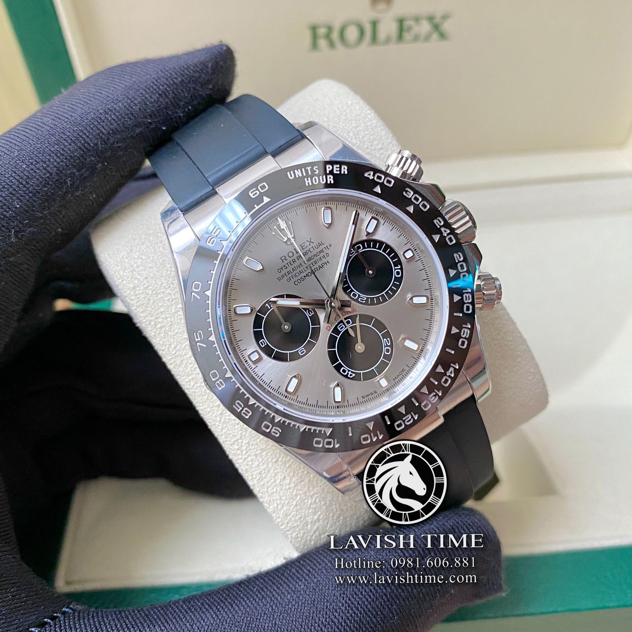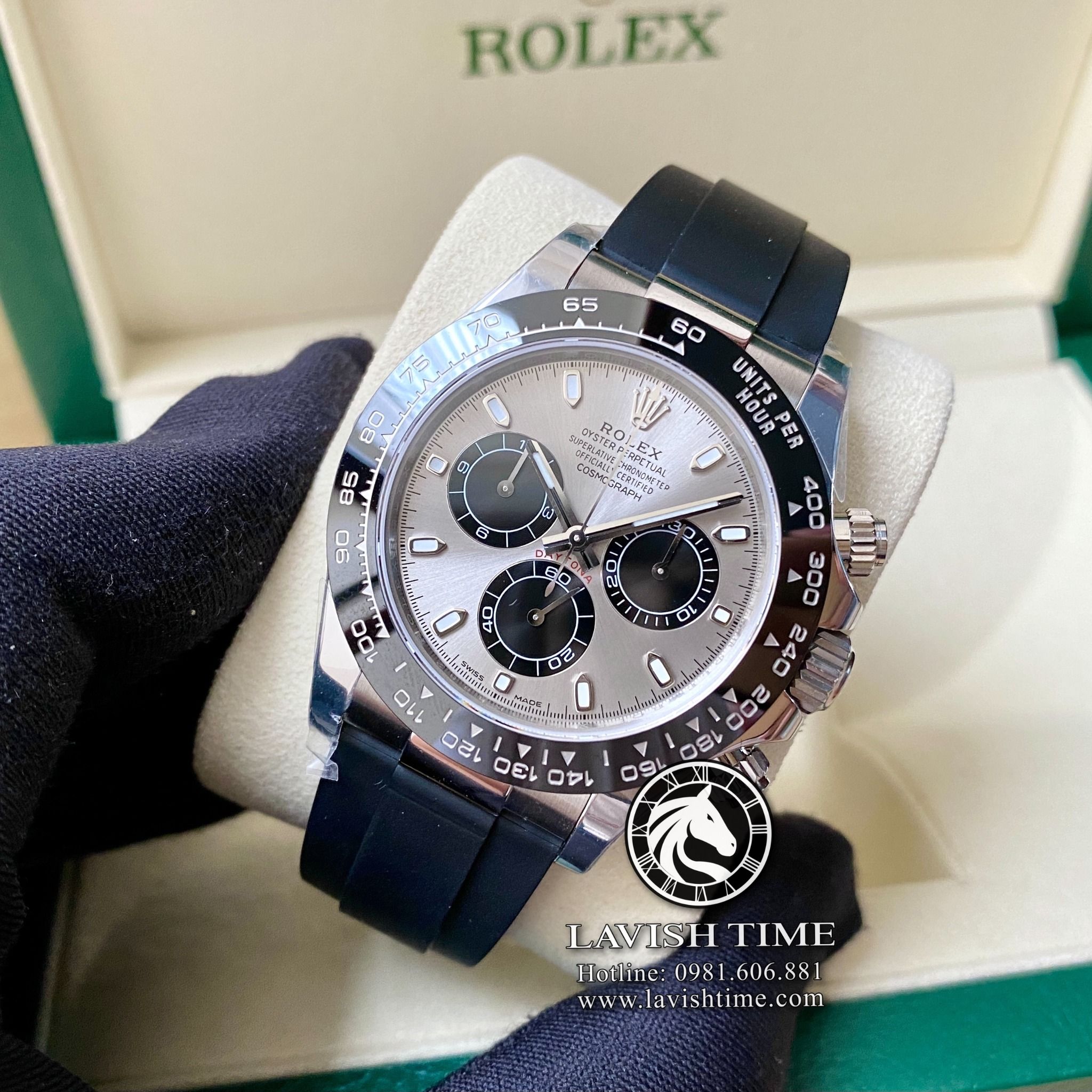 Đồng Hồ Rolex Cosmograph Daytona 116519LN-0027 Rep 1:1 Cao Cấp Vỏ Bạc Mặt Xám Dây Cao Su