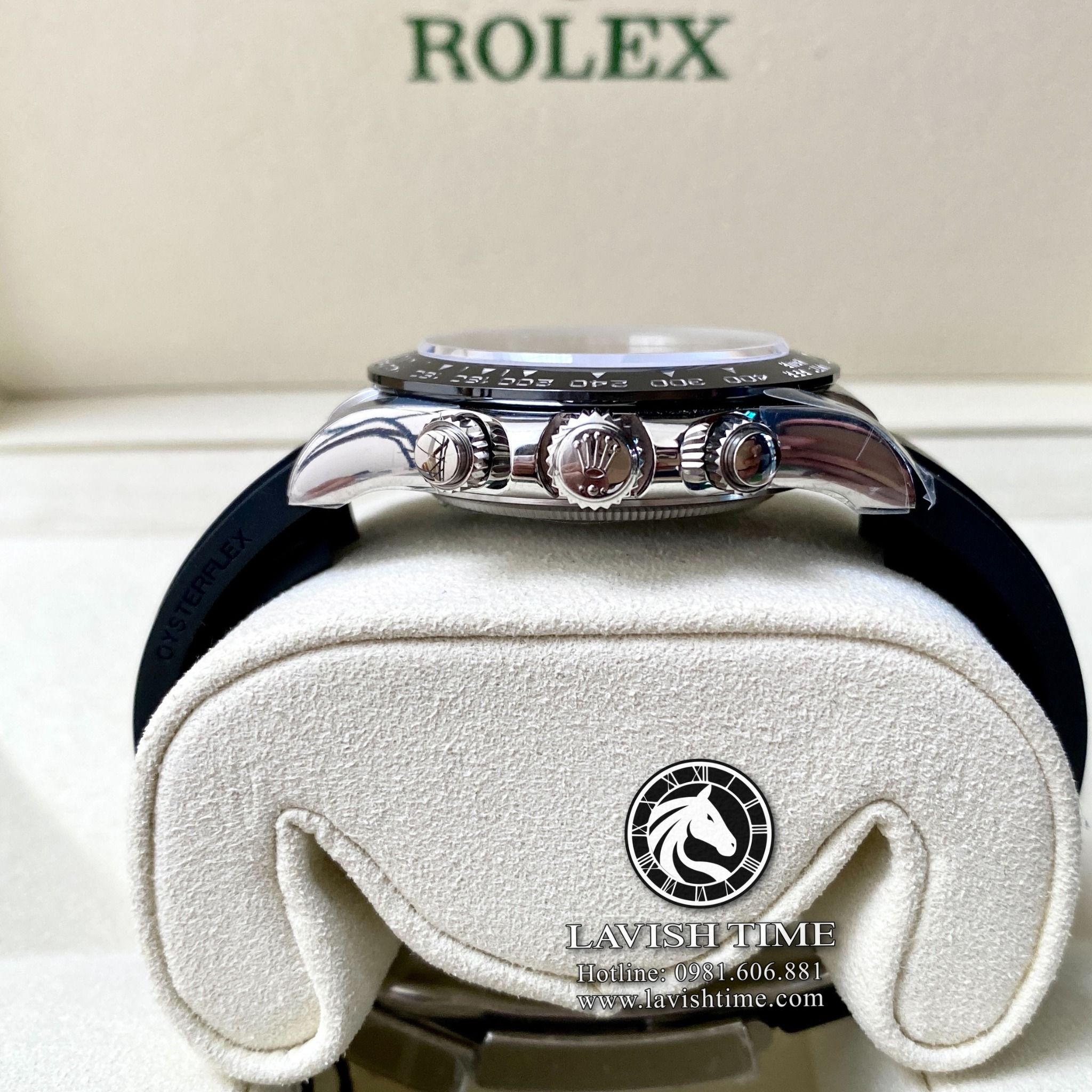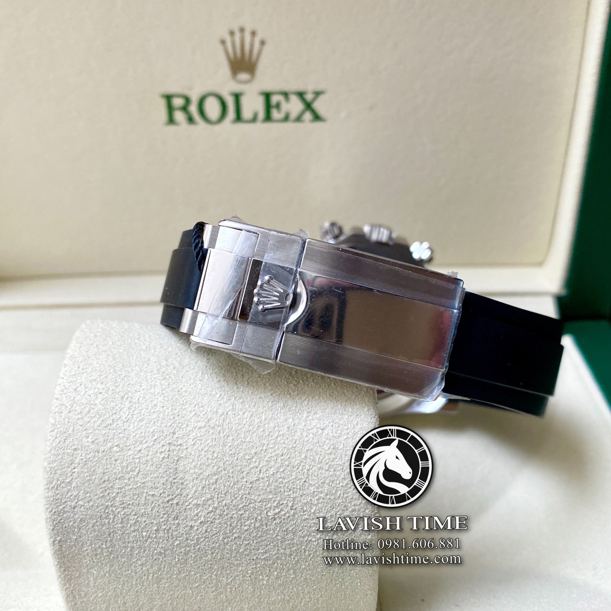 Là một trong những siêu phẩm nằm trong bộ sưu tập Cosmograph Daytona đình đám, Đồng Hồ Rolex Cosmograph Daytona 116519LN-0027 nhận được sự quan tâm đặc biệt của giới hâm mộ đồng hồ replica cao cấp. Thay vì bộ dây kim loại, chiếc Rolex Cosmograph Daytona 116519LN đi theo thiên hướng hiện đại hơn với bộ dây cao su. Thiết kế dây cao su này được Rolex đăng ký bản quyền, được đặt tên là Oysterflex. Không đơn giản chỉ là cao su, bên trong sợi dây còn có một mảnh thép nhỏ, giúp cố định form dáng và làm cho thiết kế này đẹp mắt hơn trên cổ tay người dùng.