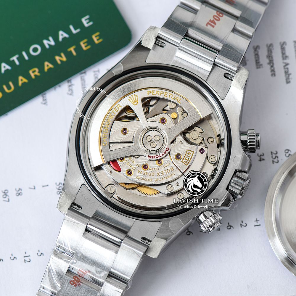 | Máy | Máy Calibre 4131 sao chép chuẩn hãng full chức năng bấm giờ thể thao Chronograph, dây tóc xanh kháng từ, lưu trữ cót lên đến 72 tiếng |