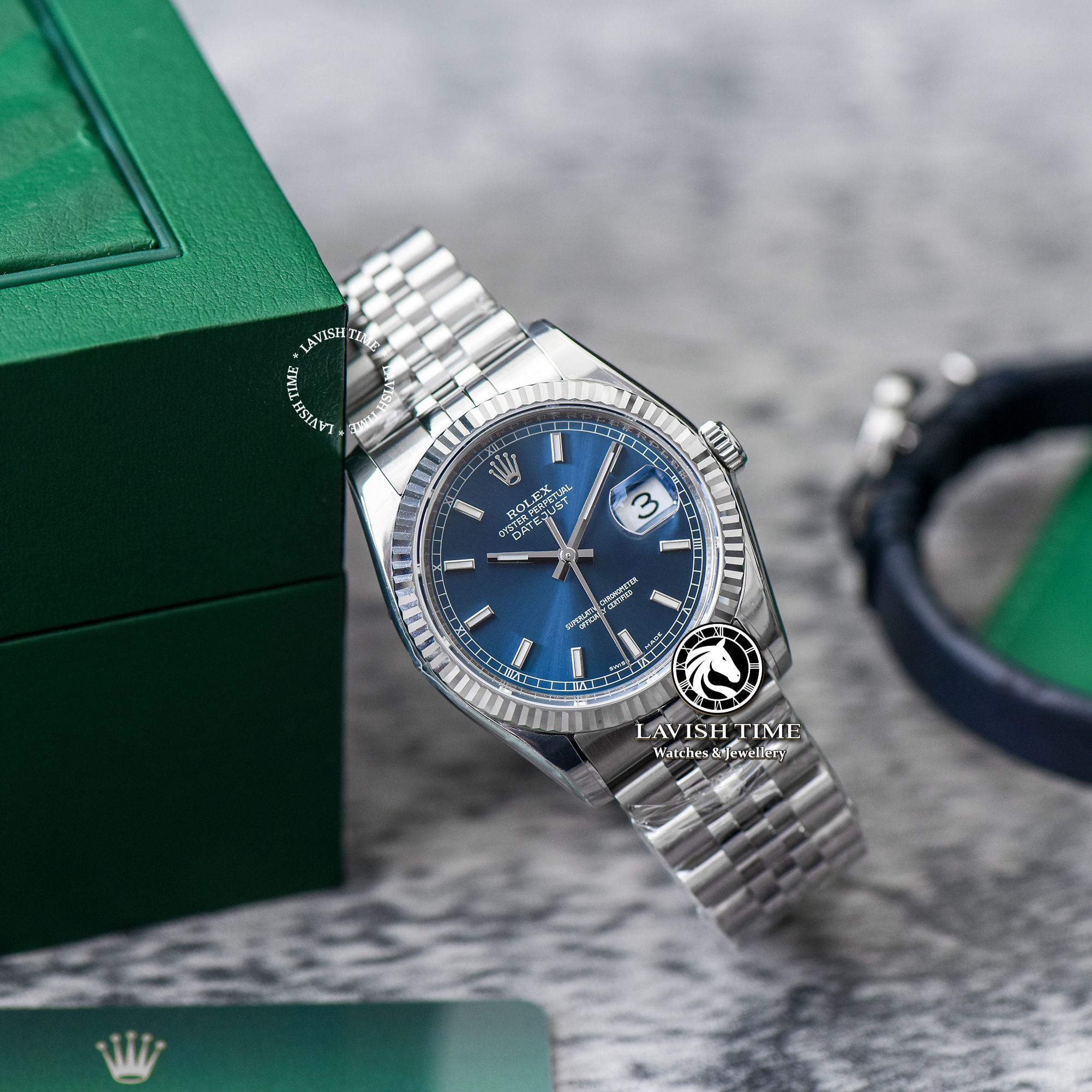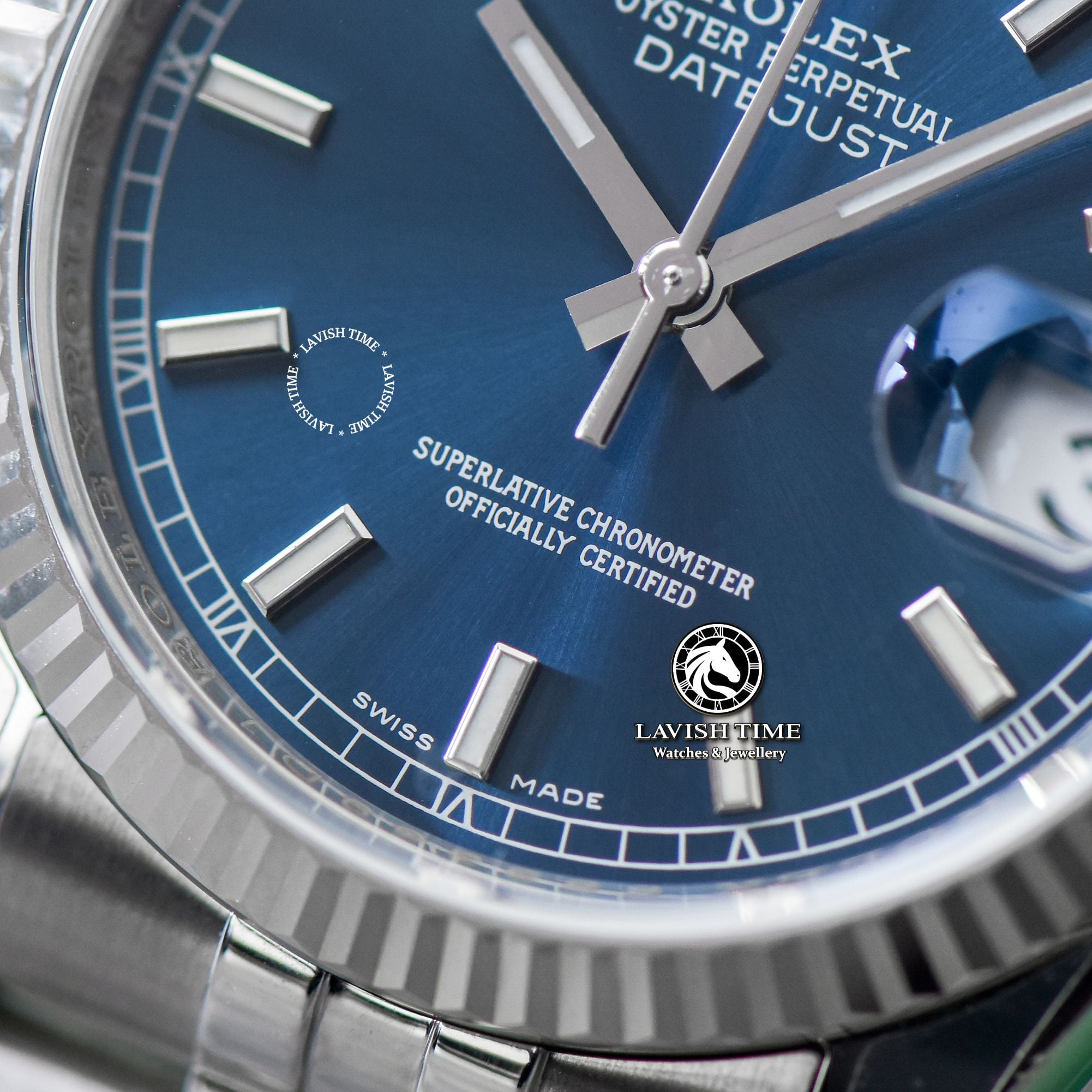 Đồng Hồ Rolex Datejust 36mm 116234-0139 Rep 1:1 Chế Tác Vỏ Bạc Mặt Xanh Dương Cọc Số Vạch Dây Kim Loại Jubilee