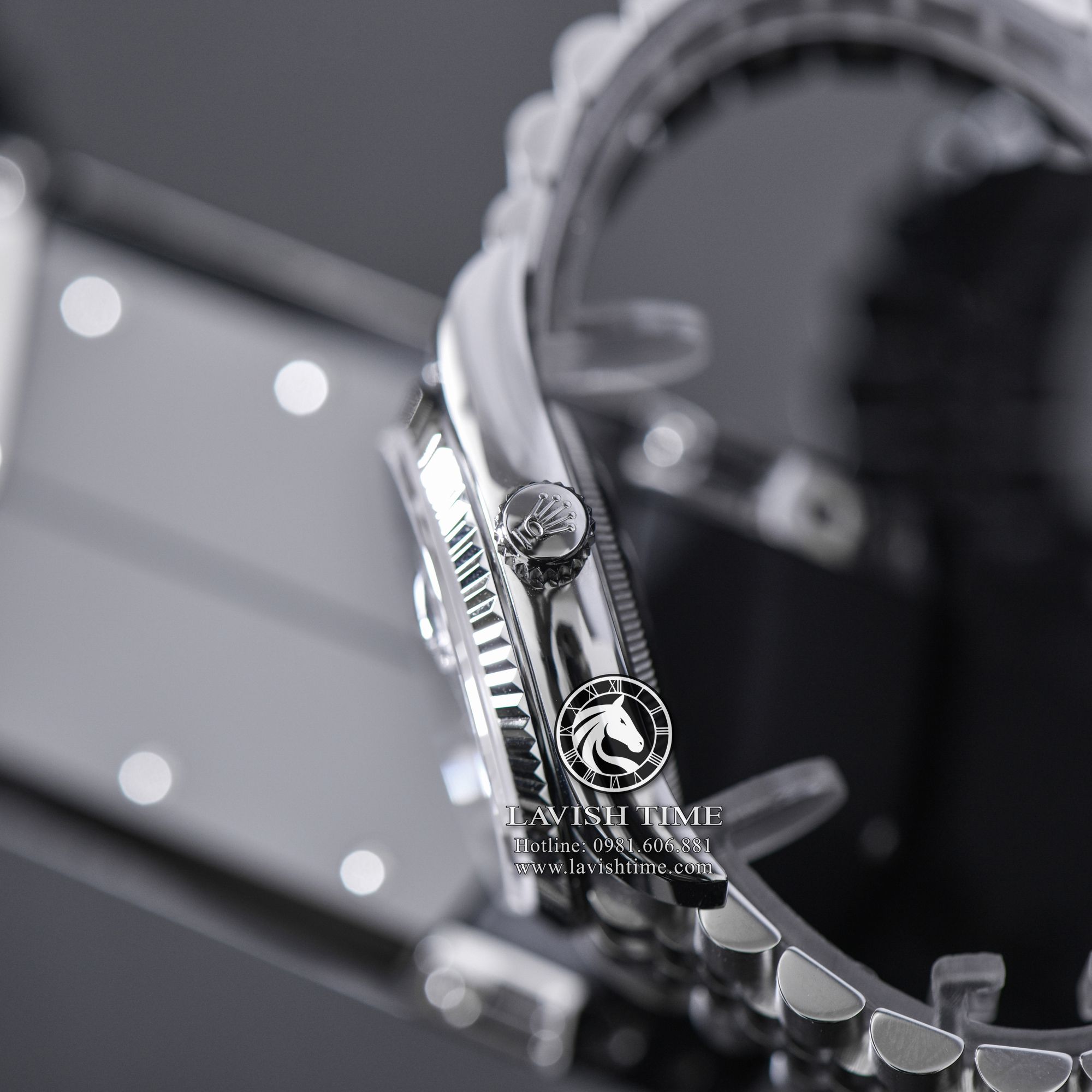 Ngoài ra, kim đồng hồ còn được phủ một lớp dạ quang luminous hấp thụ ánh sáng giúp bạn có thể quan sát dễ dàng khi bước vào phòng tối. Và tất nhiên, ta không thể bỏ qua được ô cửa sổ lịch ngày quen thuộc, vốn là niềm tự hào bởi Rolex. Ô cửa báo ngày ở vị trí 3 giờ - đặc trưng truyền thống của bộ sưu tập Rolex Datejust huyền thoại được trang bị ống kính Cyclops phóng đại chữ số để dễ dàng quan sát với mắt thường. Lịch ngày thể hiện khá đặc biệt với chữ số màu đỏ cho ngày lẻ và chữ màu đen cho các ngày chẵn.