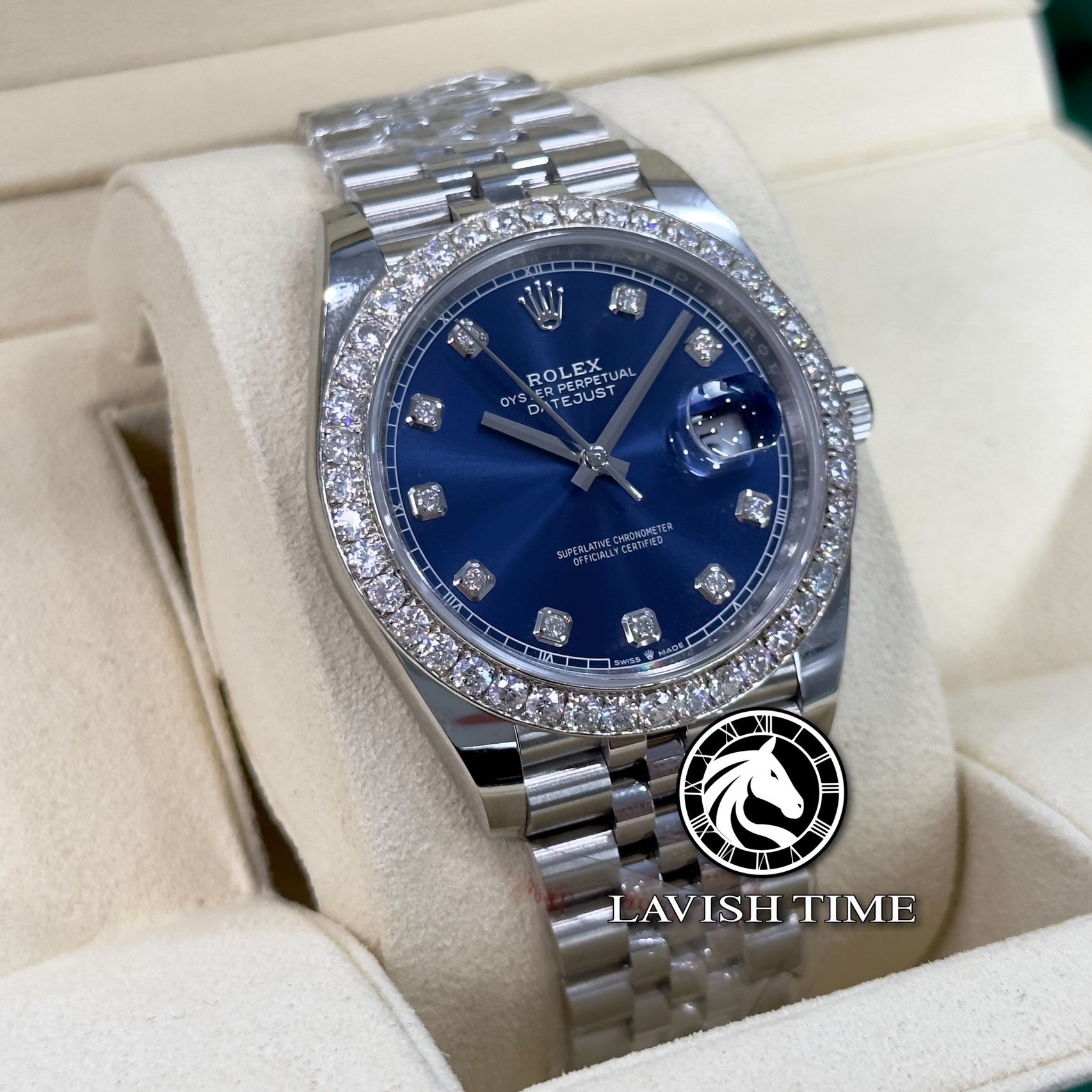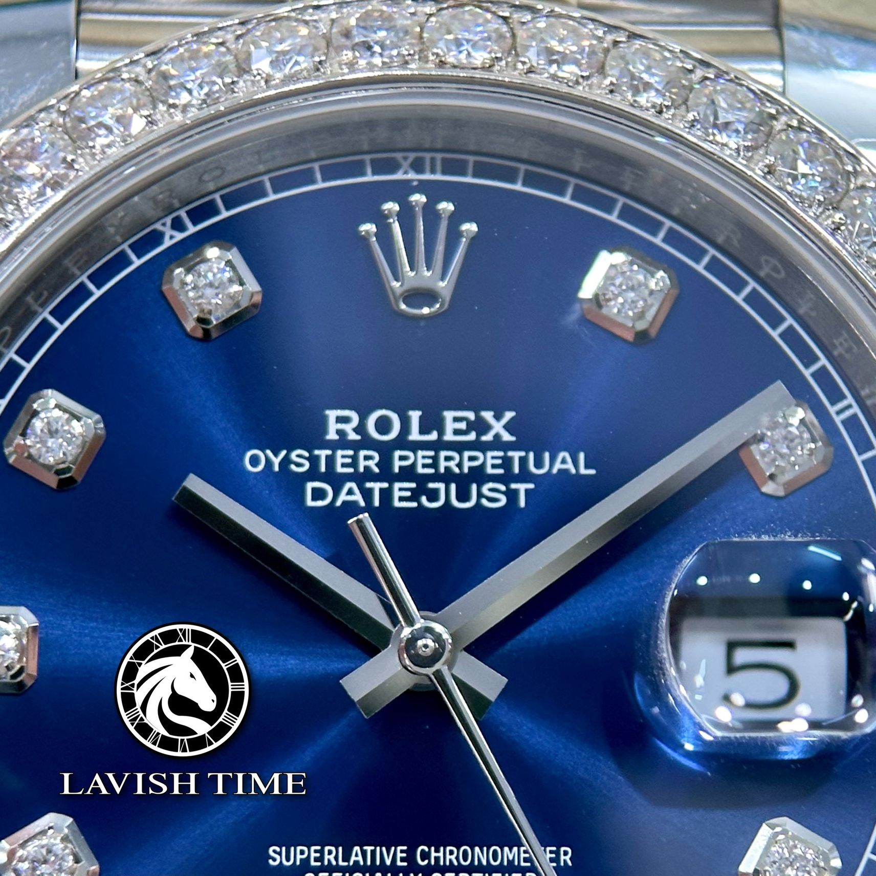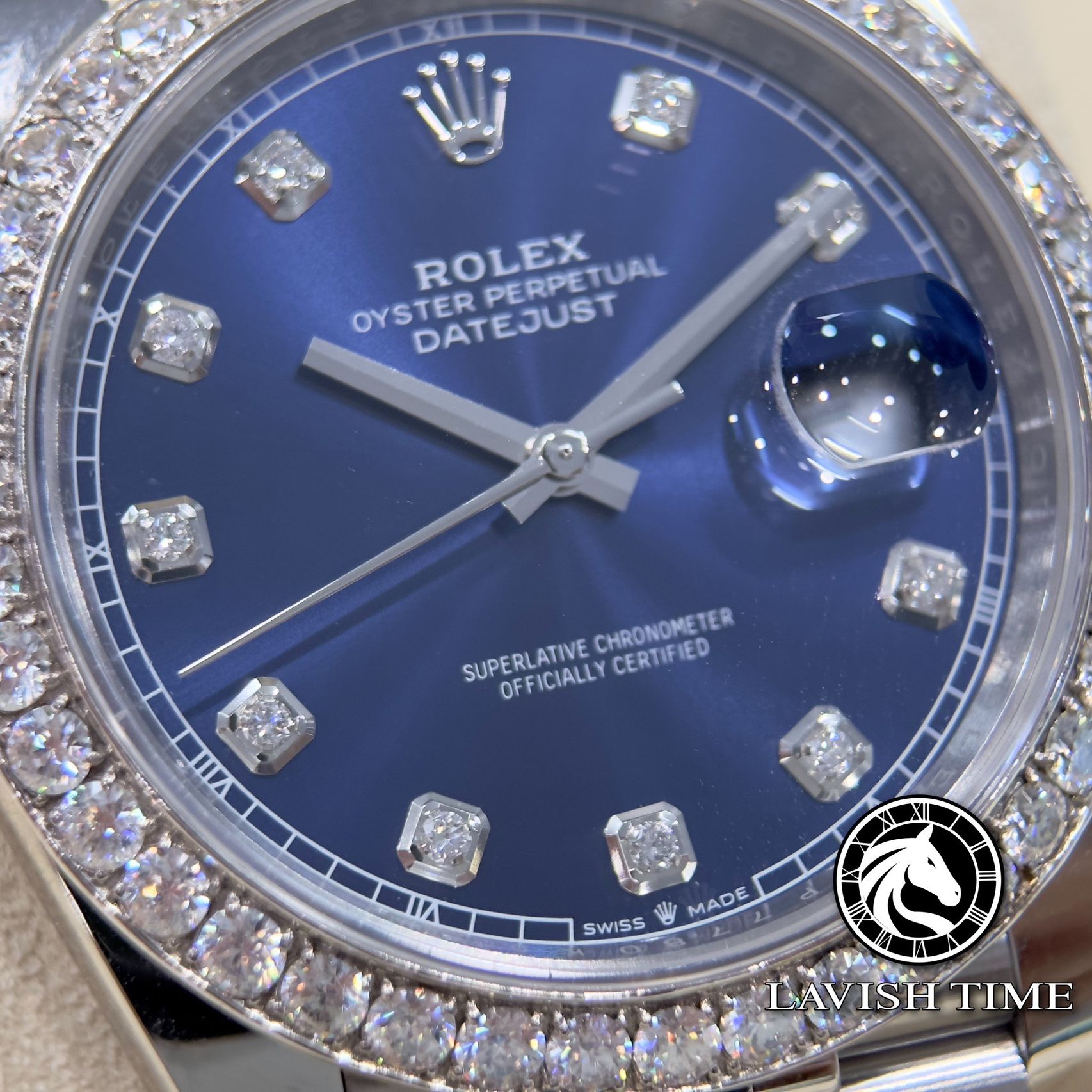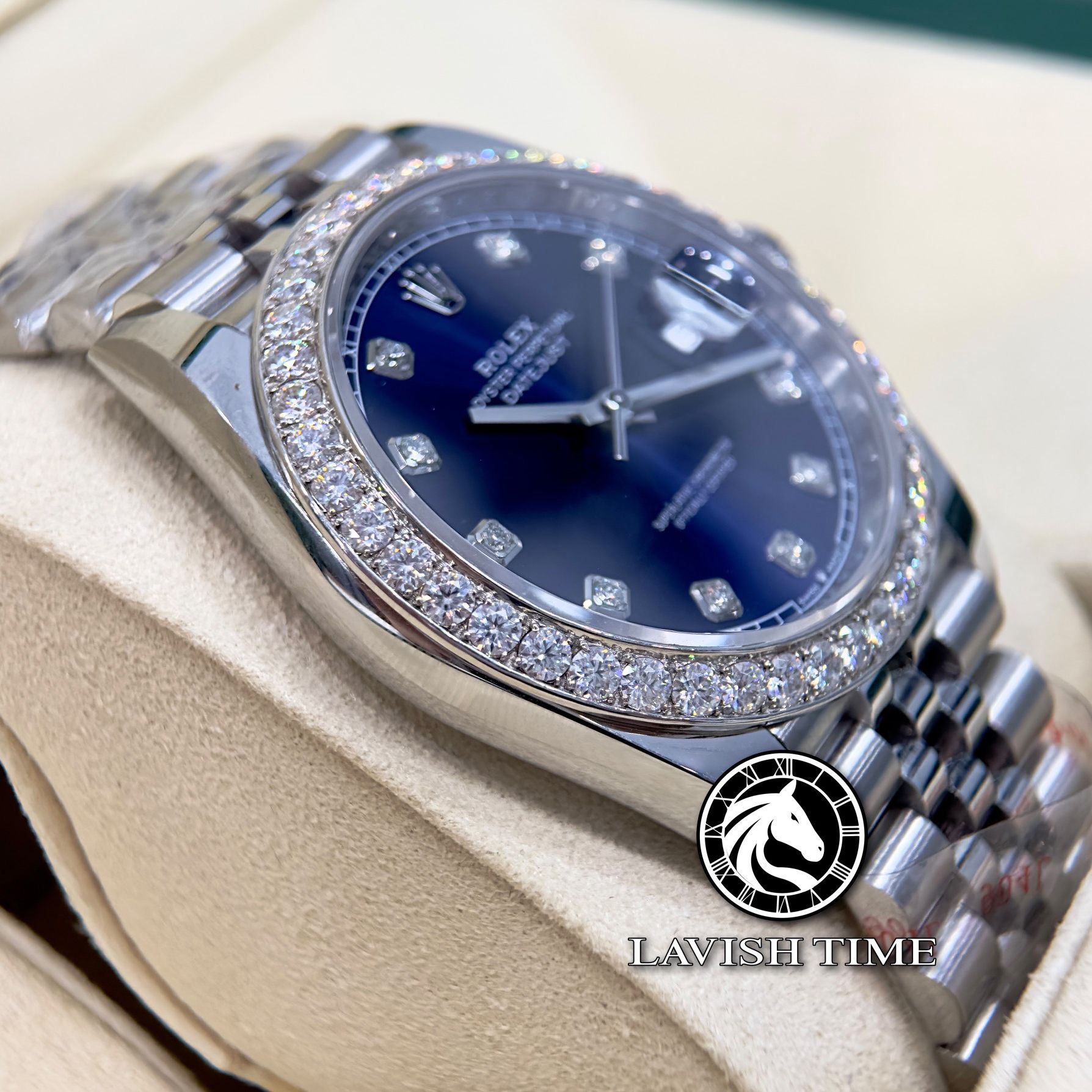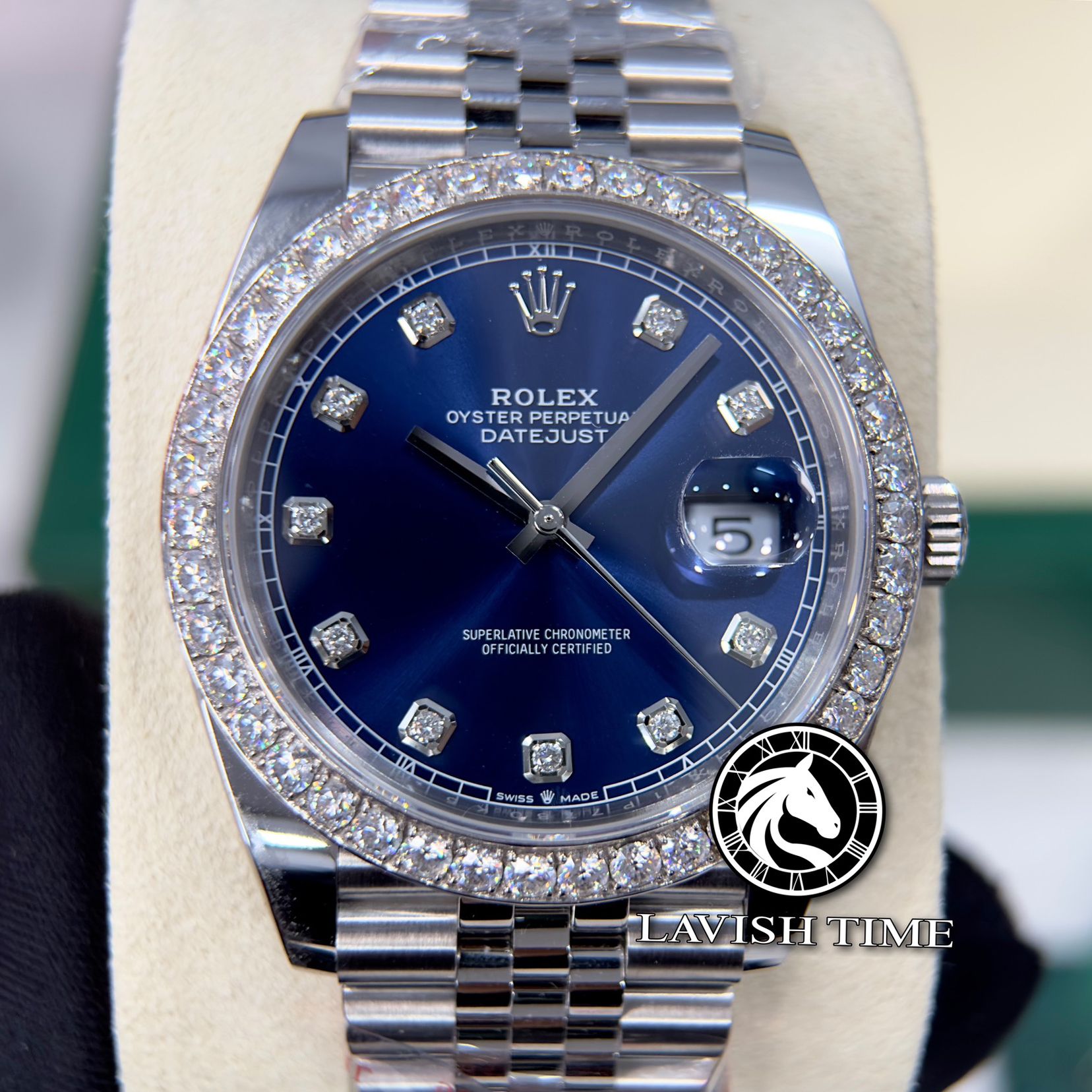 Đồng Hồ Rolex Datejust 41mm 126334-0016 Rep 1:1 Chế Tác Vỏ Bạc Niềng Bezel Và Cọc Số Độ Kim Cương Thiên Nhiên Mặt Xanh Dây Kim Loại Jubilee