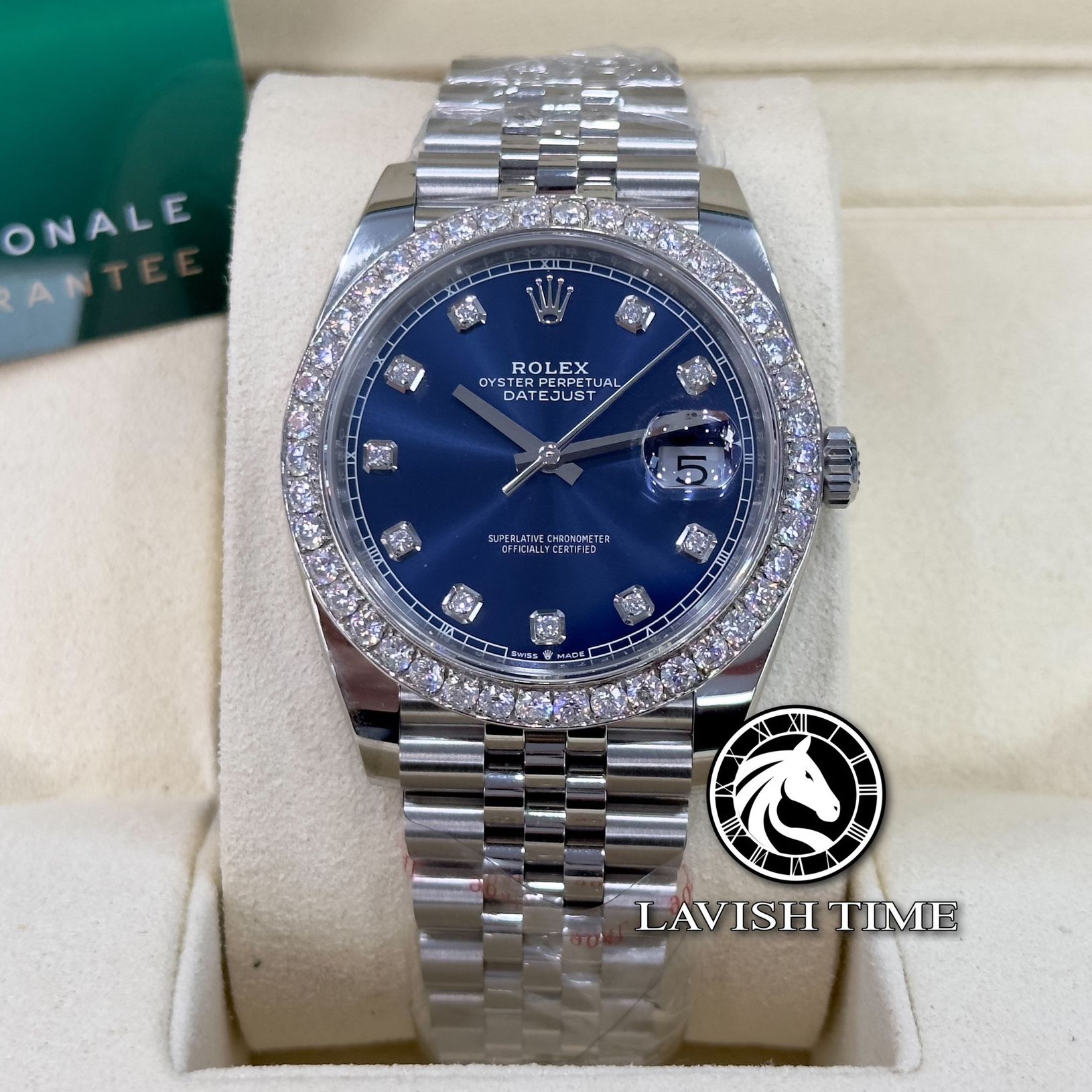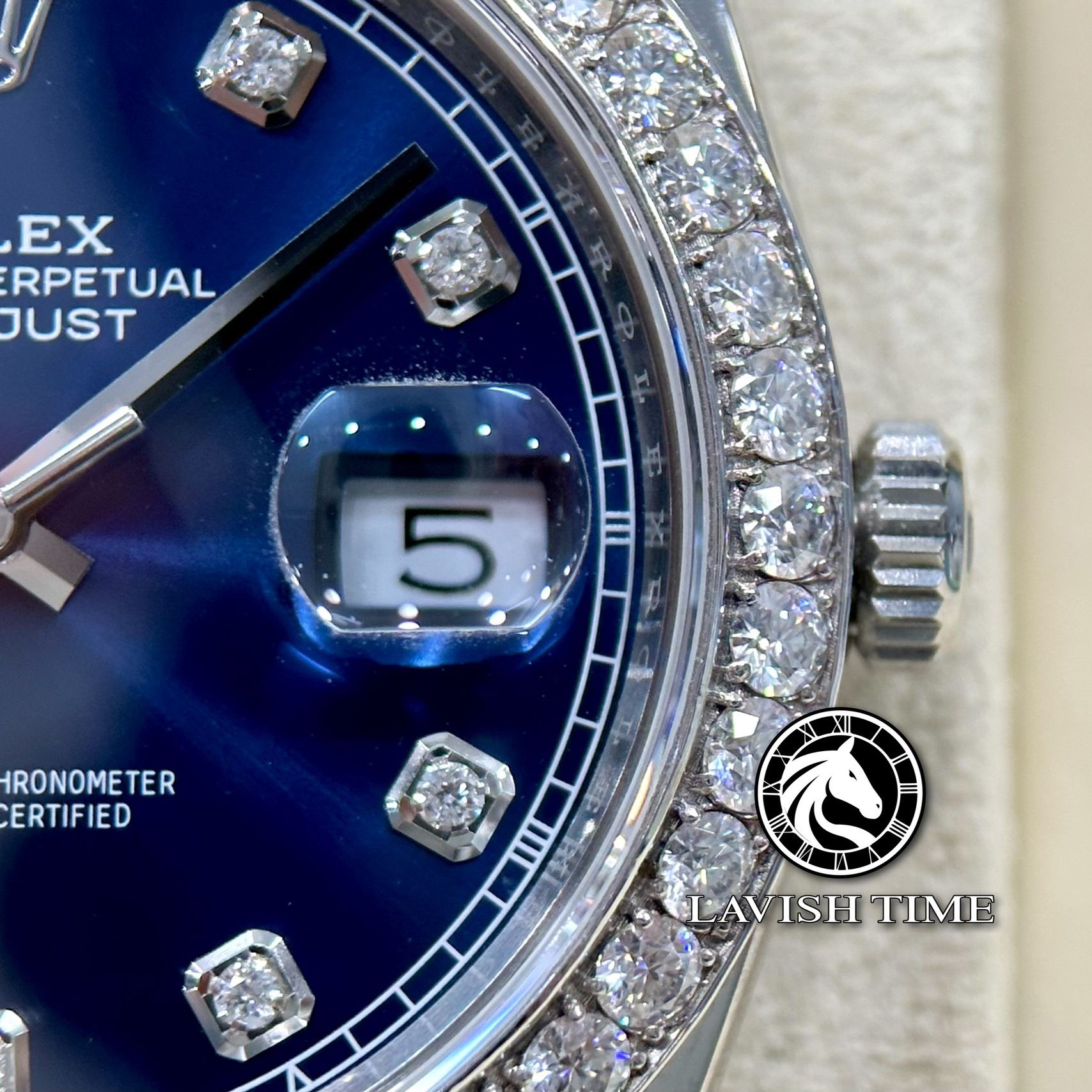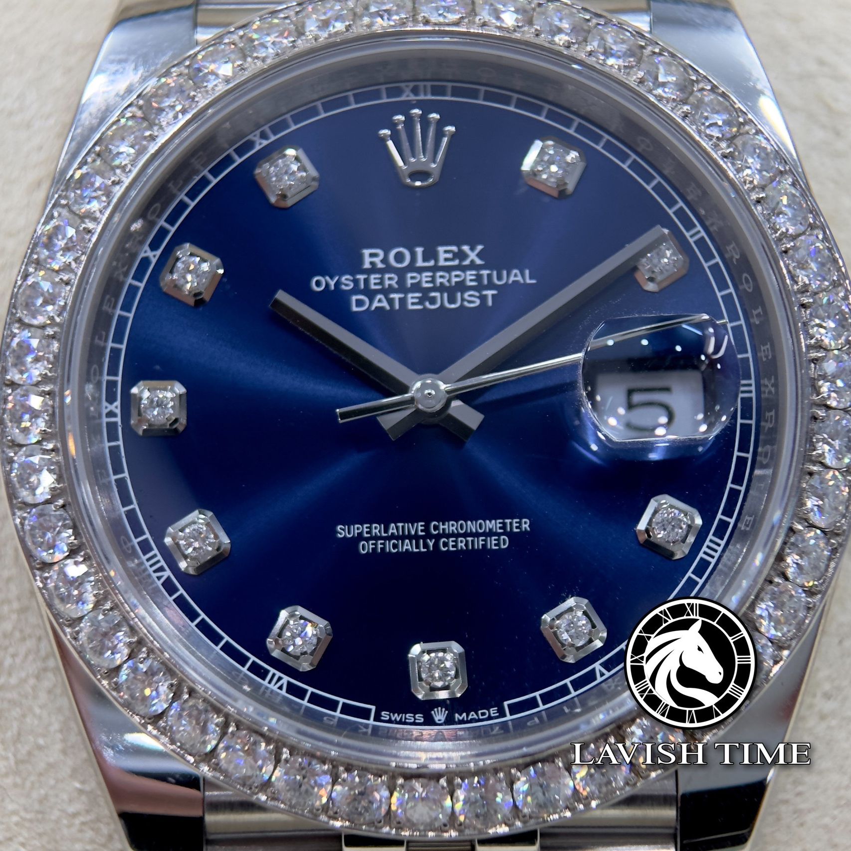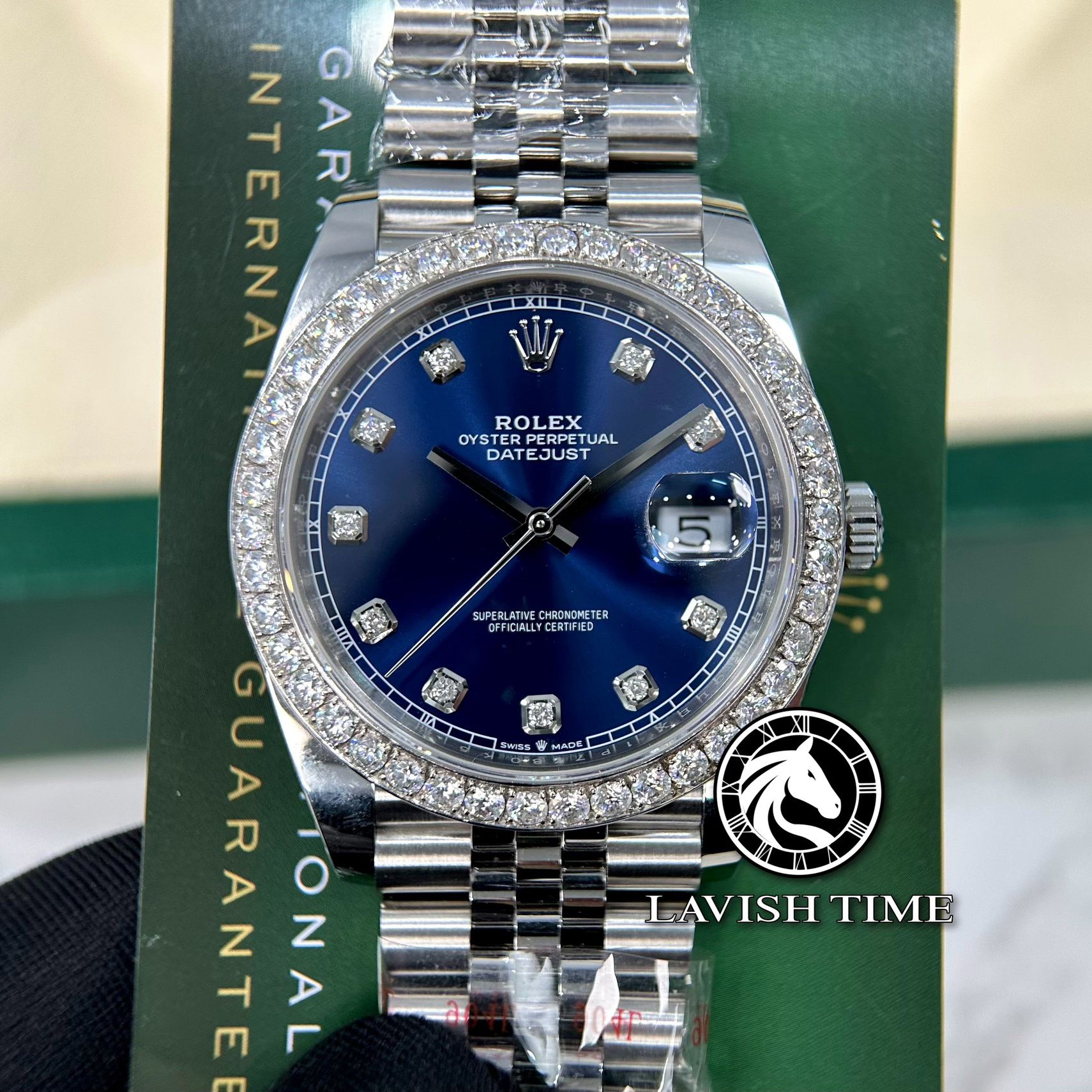 Đồng Hồ Rolex Datejust 41mm 126334-0016 Rep 1:1 Chế Tác Vỏ Bạc Niềng Bezel Và Cọc Số Độ Kim Cương Thiên Nhiên Mặt Xanh Dây Kim Loại Jubilee