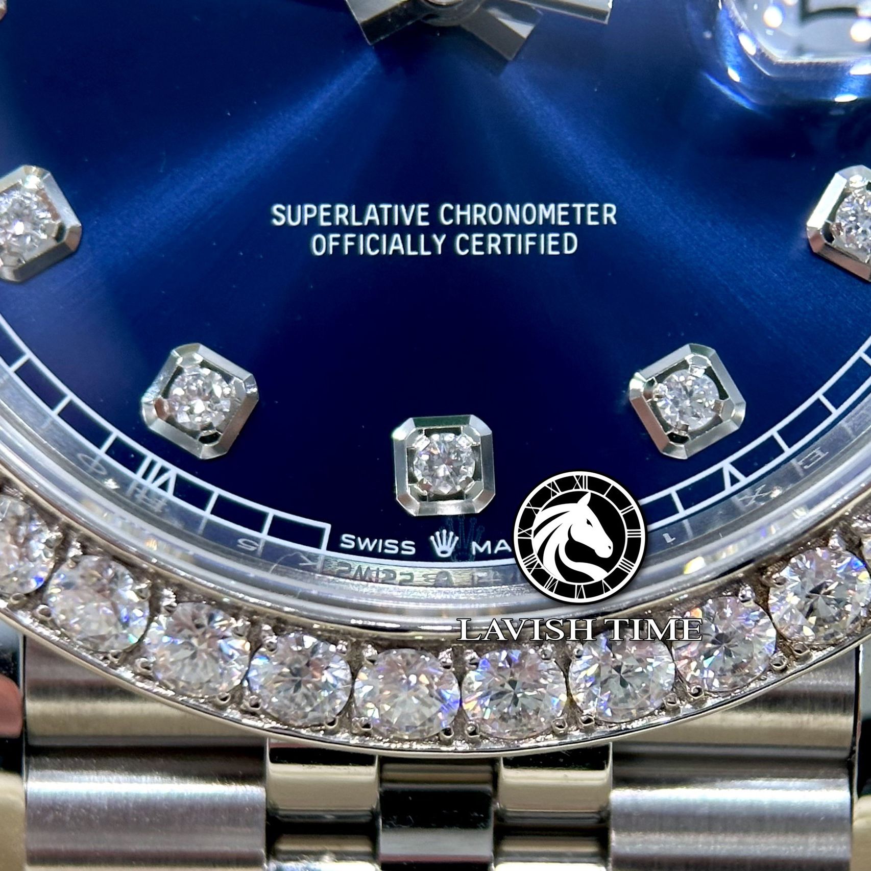 | Mặt số | Mặt số độ cọc số kim cương thiên nhiên 10 viên 1.5 ly và chân kim vàng 18K. |
