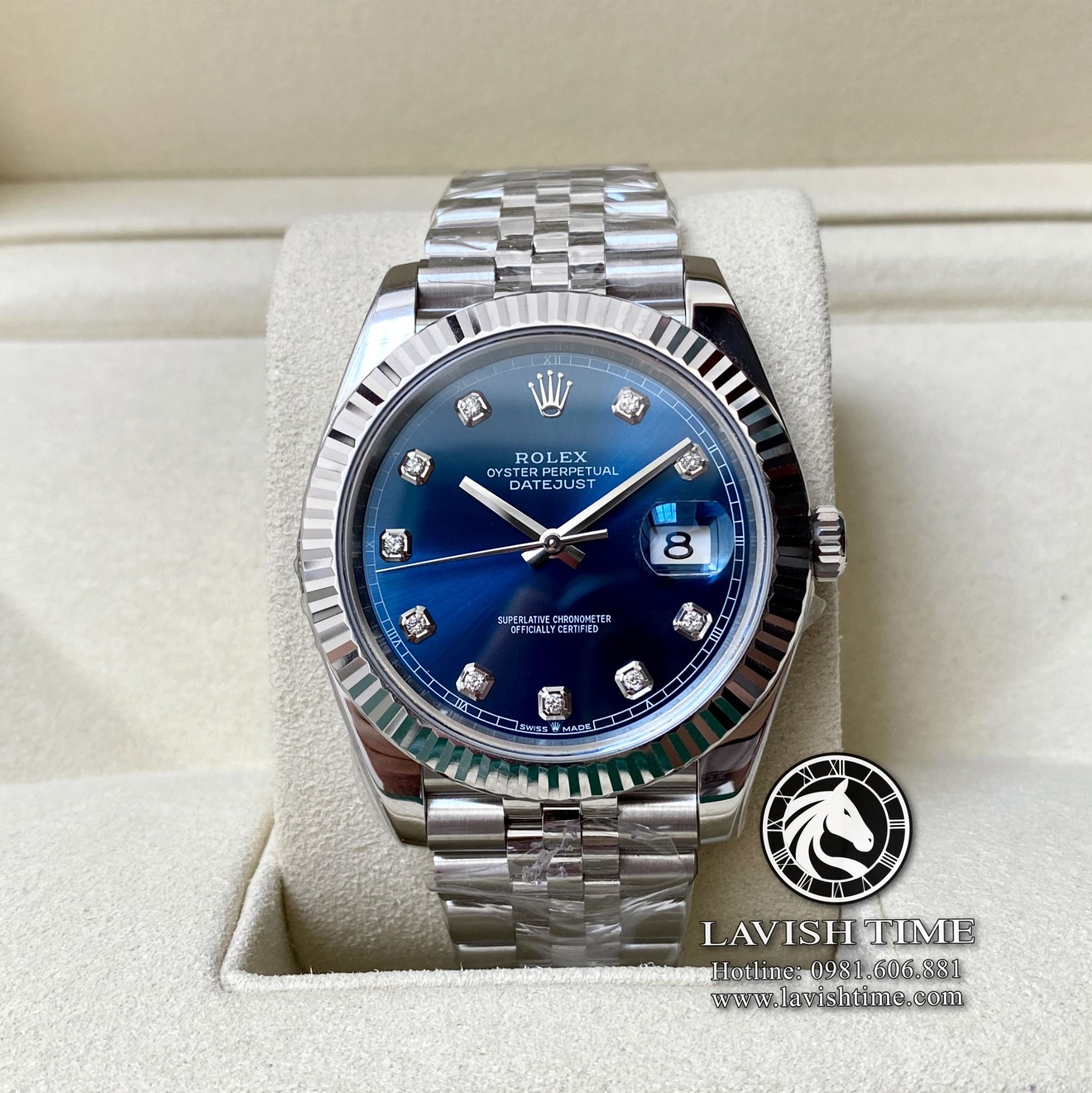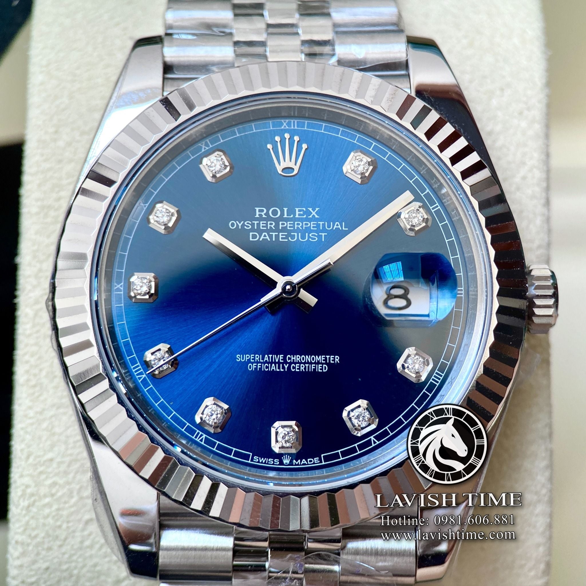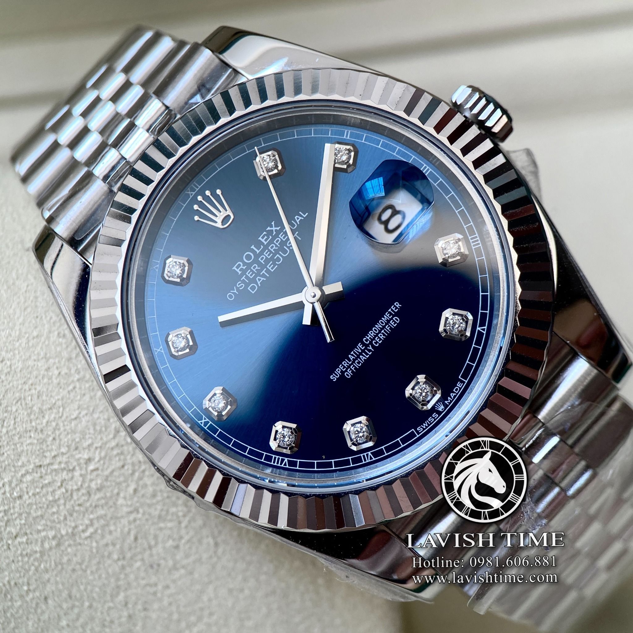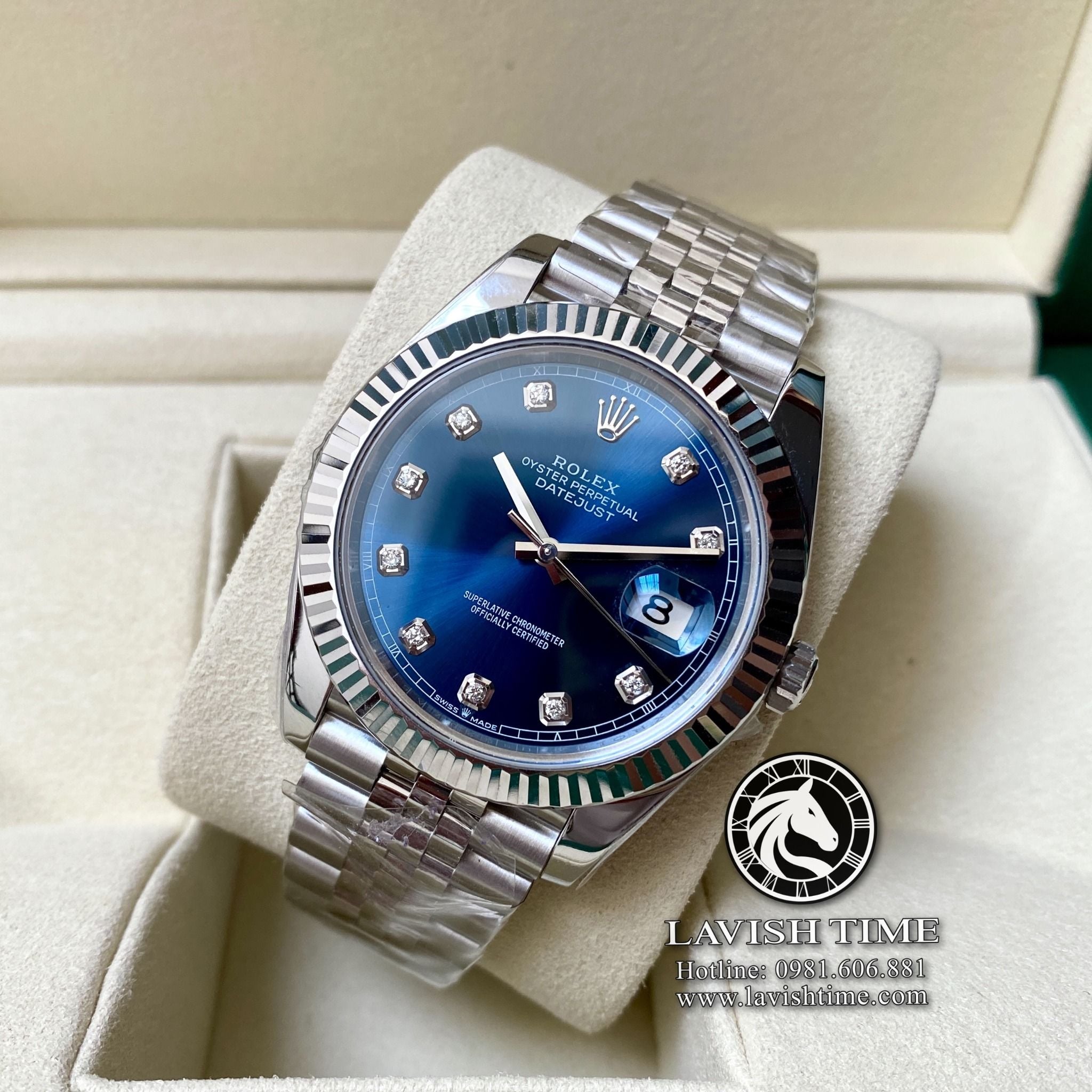 Đồng Hồ Rolex Datejust 41mm Rep 1:1 Chế Tác Vỏ Bạc Mặt Xanh Độ Cọc Số Kim Cương Thiên Nhiên Dây Kim Loại Jubilee