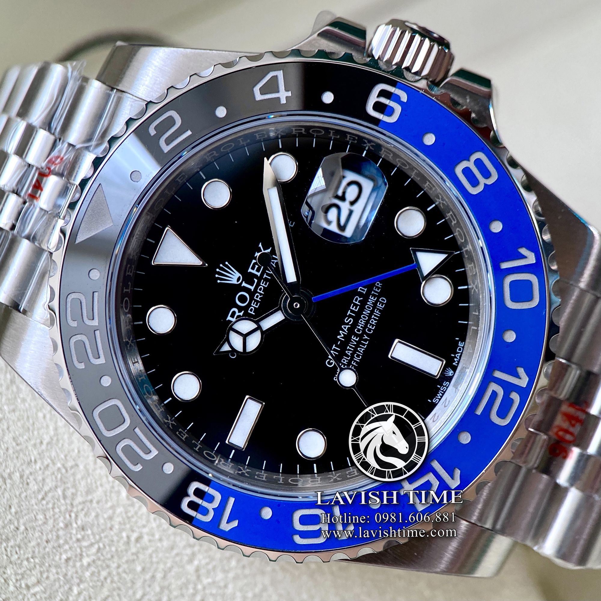 | Máy | Máy Calibre 3186 sao chép chuẩn hãng tần số dao động 28.800 vph, sai số cực thấp +-5 giây/1 ngày, sở hữu khả năng lưu trữ năng lượng lên đến 48 tiếng, đầy đủ chức năng GMT chuẩn hãng cùng chức năng chỉnh ngày nhanh bằng kim giờ. |