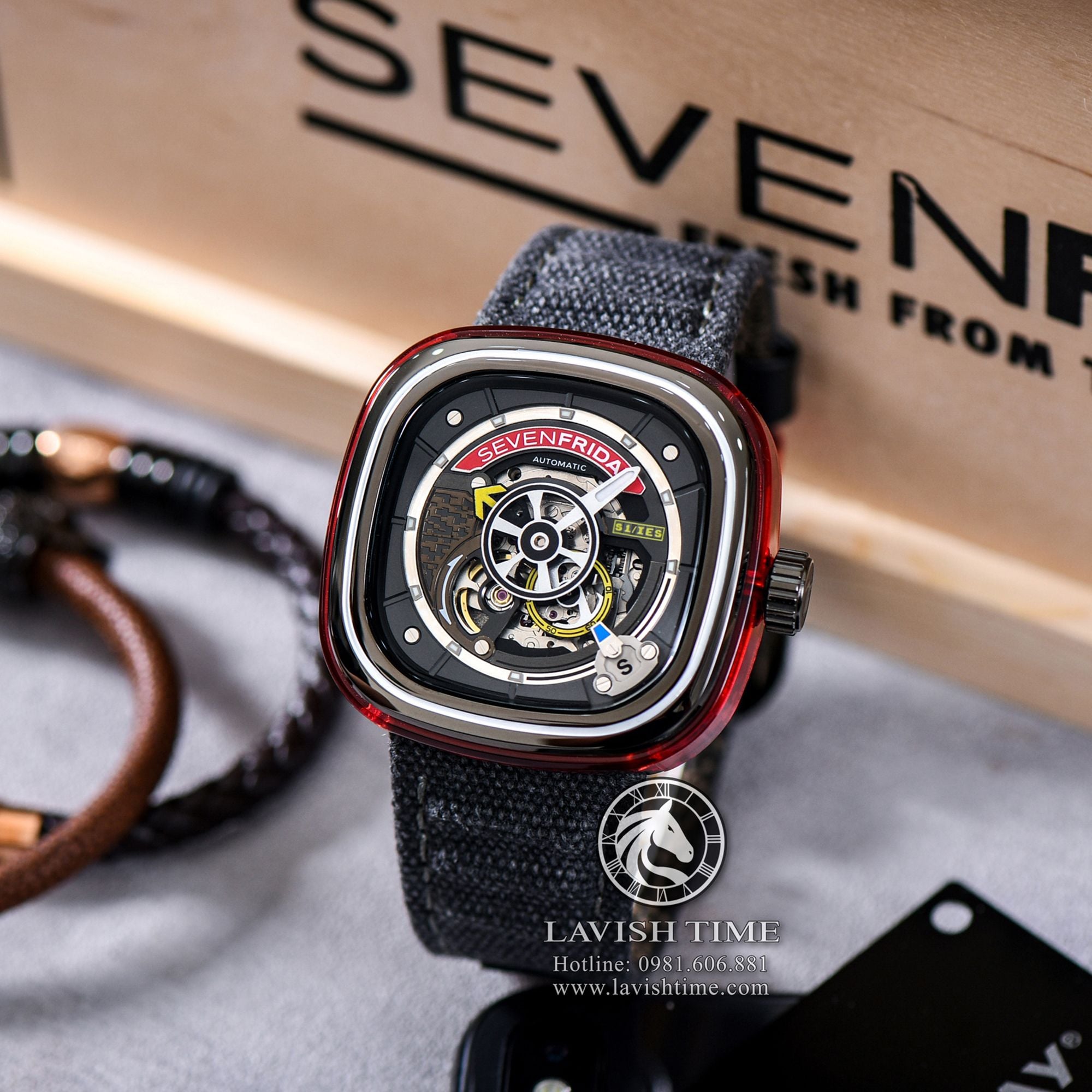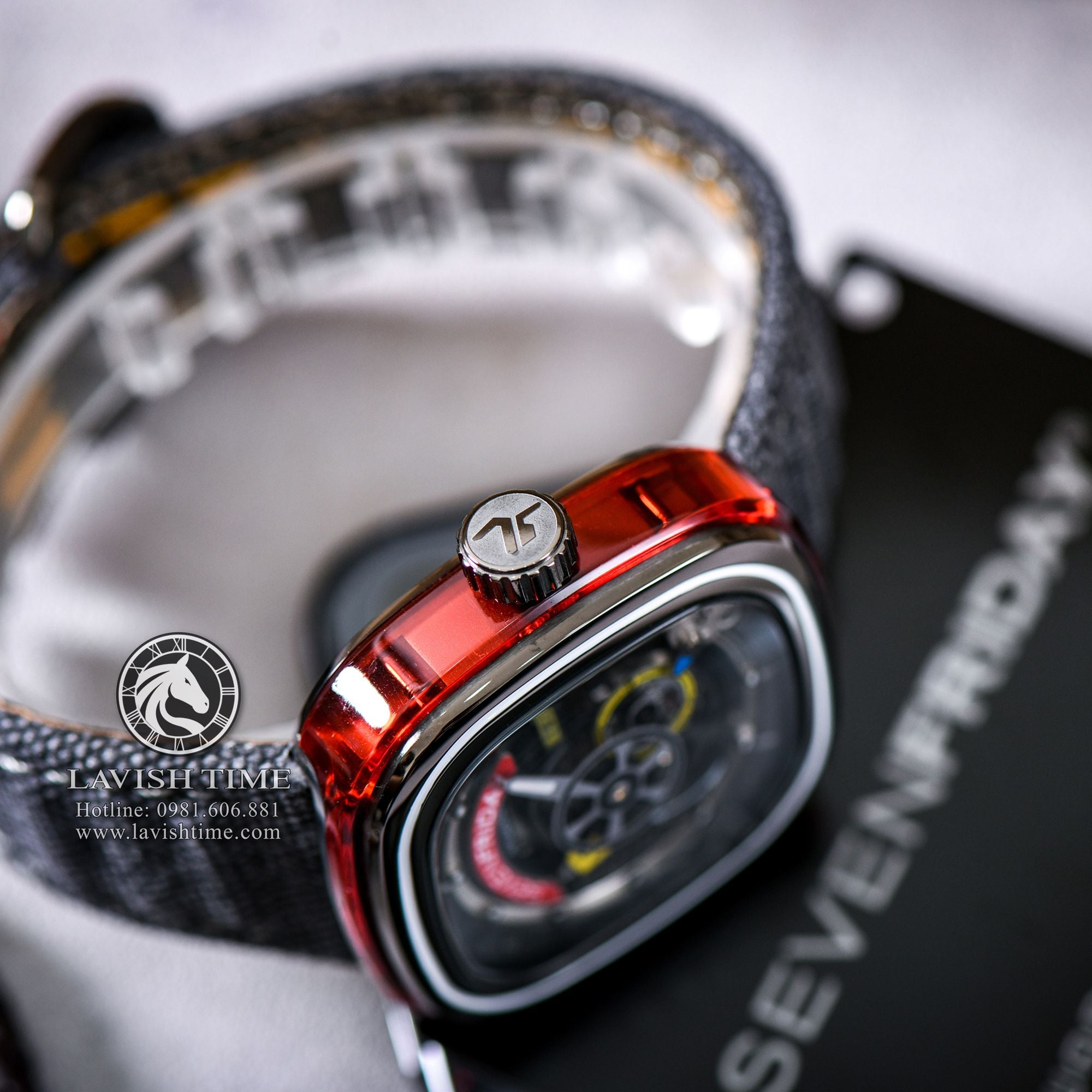 Gia nhập gia đình SevenFriday và mang trên mình thiết kế vuông được bo cong góc cạnh, S1/03 sở hữu bộ vỏ thép không gỉ đánh bóng và hoàn thiện bằng công nghệ phun cát. Đặc biệt, bao bọc bên ngoài là 1 lớp animation tái chế tạo thêm hiệu ứng trong suốt màu đỏ mang đến sự trẻ trung và vô cùng năng động.