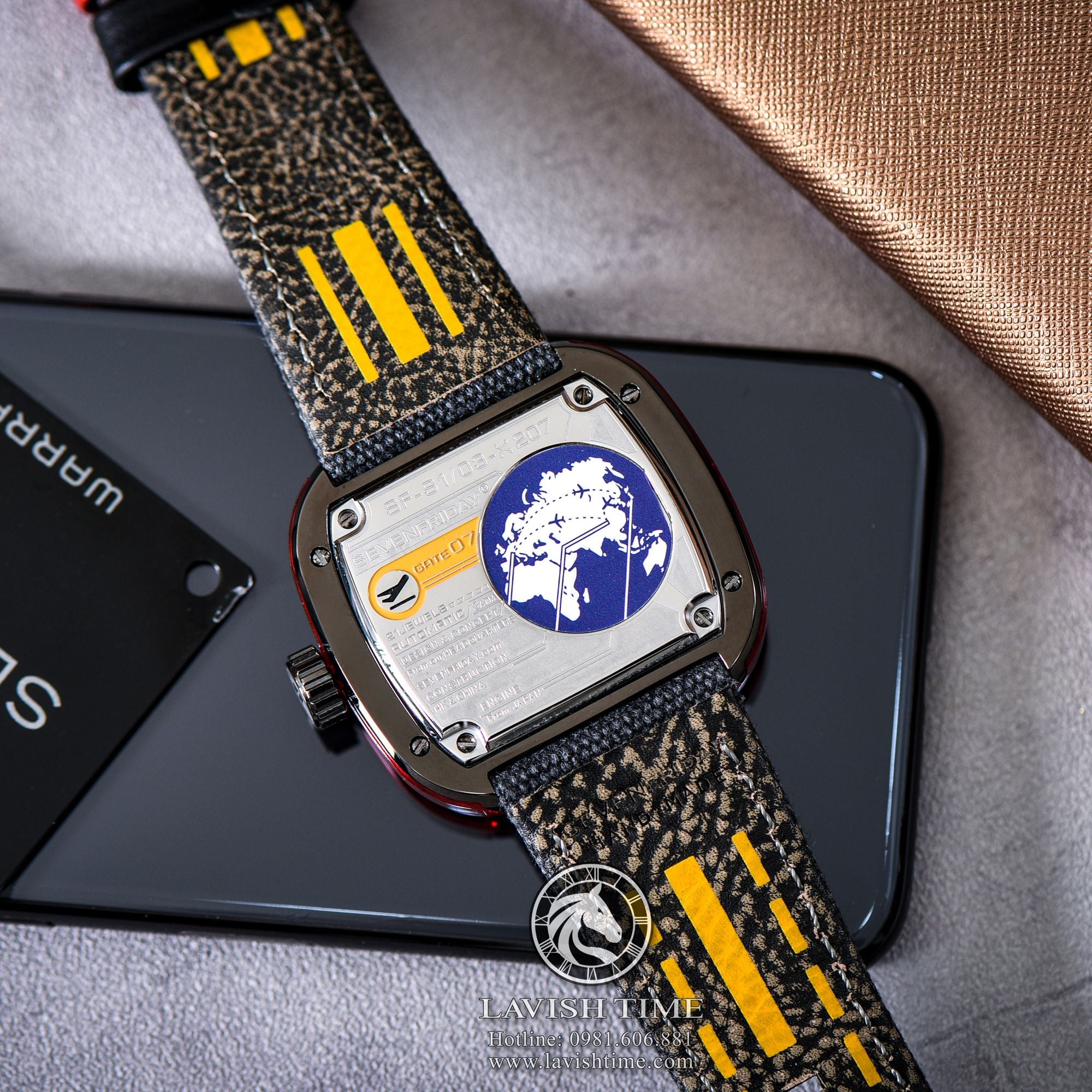 Mẫu đồng hồ SevenFriday S1/03 được trang trí thêm các điểm nhấn nhá màu vàng và đỏ trên mặt số mang đến một cái nhìn mới vô cùng độc đáo trên cổ tay người đeo.