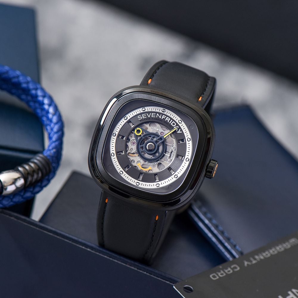Mẫu đồng hồ SevenFriday T1/02 này đã khéo léo kết hợp các yếu tố đương đại như mặt số lộ cơ Skeleton, dáng vuông bo tròn và đặc biệt là cách bài trí mặt số, thể hiện những giá trị khác biệt của chủ nhân khi lựa chọn đồng hồ SevenFriday.